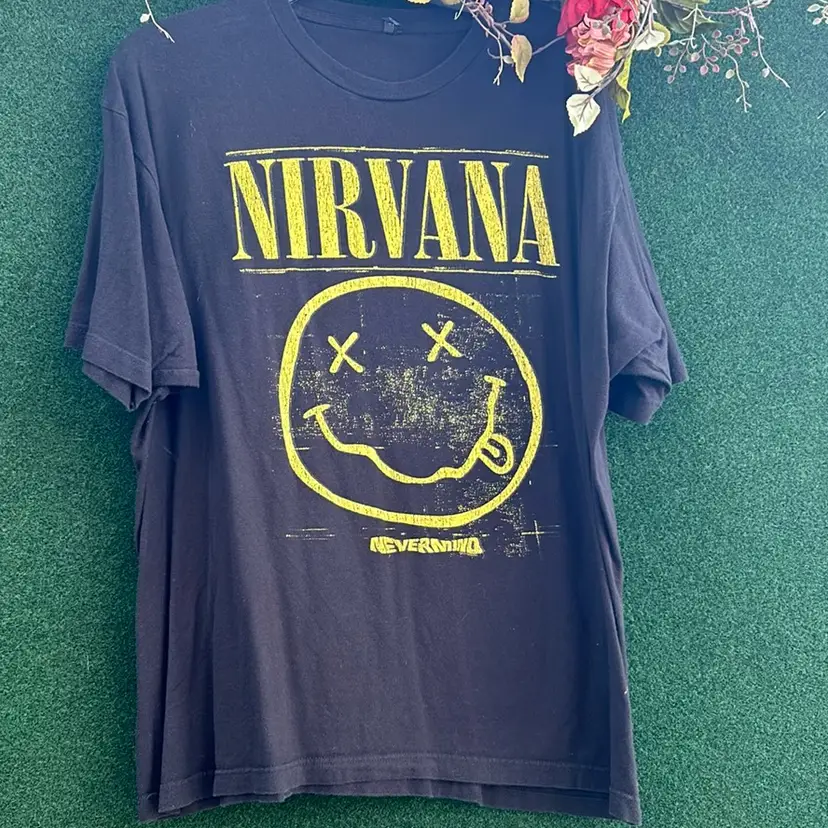 NEVERMIND , Nirvana 2015 Black T-Shirt Vintage style Tultex tag Pit to pit 60 cm /23.6” length 68 cm/ 26.8”