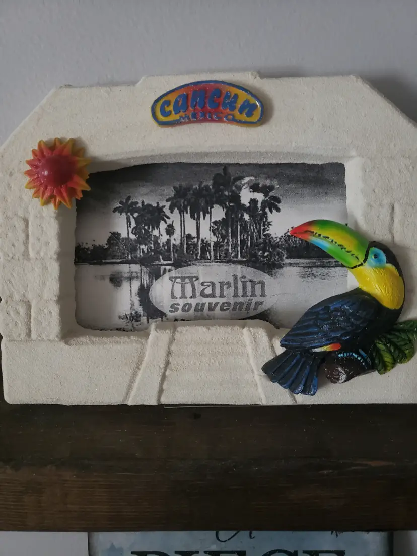 New CANCUN MEXICO Picture Frame ! This is a Heavy Stone Frame with a Beautiful Tropical Bird ! Enjoy your vacation memories with this awesome picture frame ! Very Nice Gift , why pay those TOURIST PRICES for these items ? Only one in stock - Congrats to the Winner of this Auction !