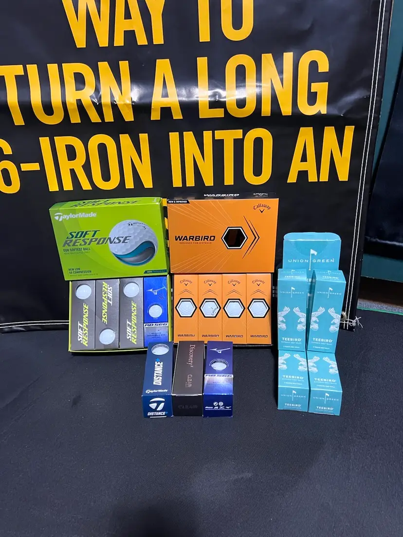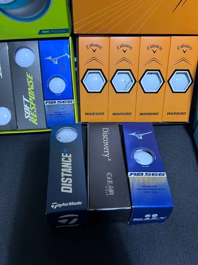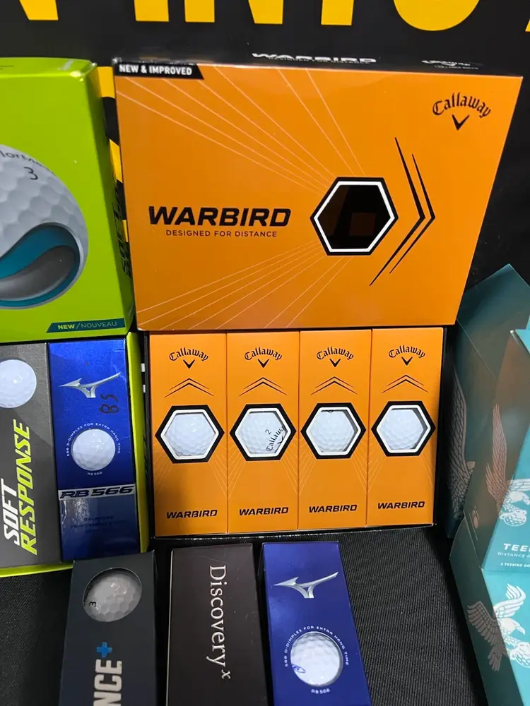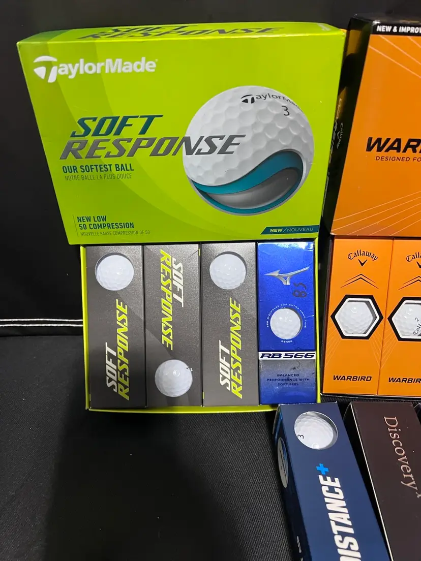 All new. 1 sleeve Callaway Solaire 3 sleeves Soft Response 2 sleeves RB566 1 sleeve Distance Plus 1 sleeve Clear Discovery 1 dozen warbirds 1 dozen teebirds