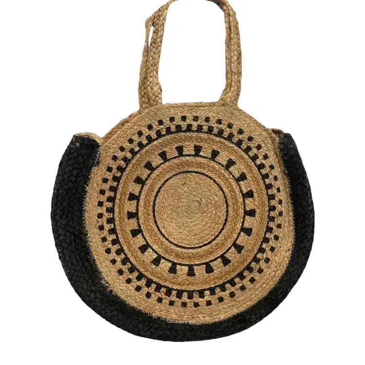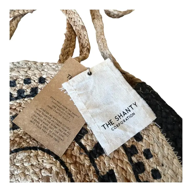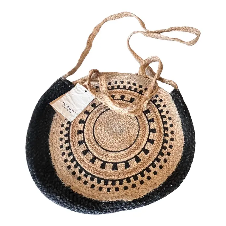 Brand: The Shanty Corporation Color: Tan UPC: Does Not Apply Vintage: No Shape: Round Bag Height: 16 in Size: Large Exterior Color: Tan Theme: Bohemian, Beach Occasion: Casual, Travel Accessories: Other Strap Bag Depth: 3 in Pattern: Woven Handle Drop: 8 in Department: Women Style: Shoulder Bag Features: Woven, Eco Friendly, Lightweight Handmade: Yes Strap Drop: 22 in Handle/Strap Material: Straw, Hemp Bag Width: 16.6 in Exterior Material: Straw, Hemp, Wicker Accents: Strap Accent, Double Handles, Crossbody Strap Handle Style: Double Handles Handle/Strap Color: Tan