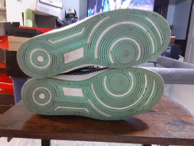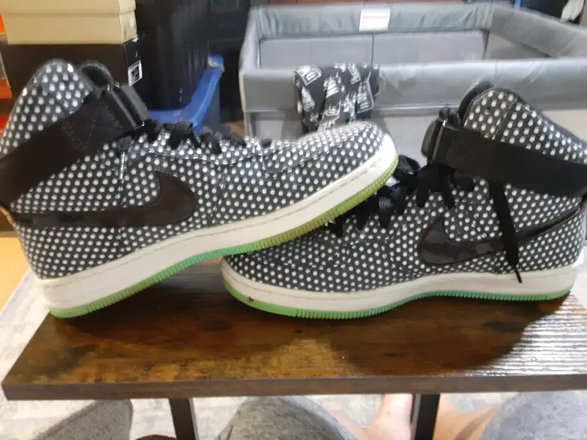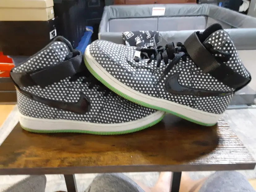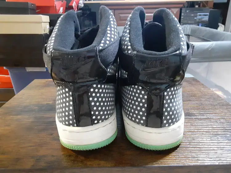 Nike AF1 Womens Ultra Force Mid Black Sail Polka Dot Sz 9 654851-011 Green Sole