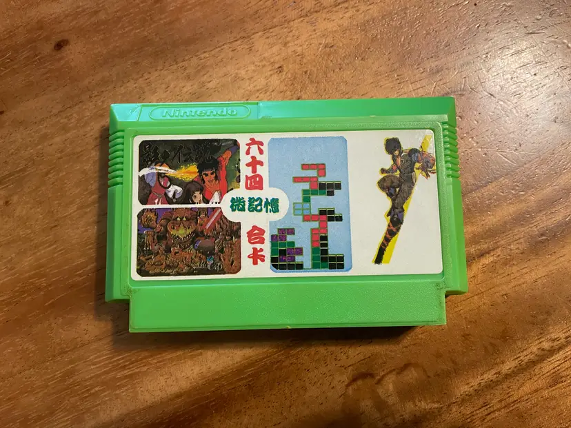 the chinese character here translates to "64 in 1 card" meaning this may have 64 games on it but I can't confirm. what you see is what you will receive, sold as is.