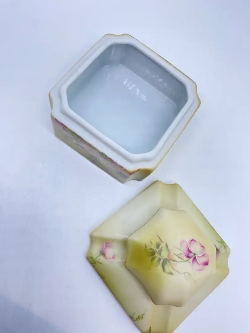 Nippon Dresser Vanity Hand Painted Floral Powder Box Japan Vintage. Marked on bottom. No damage.