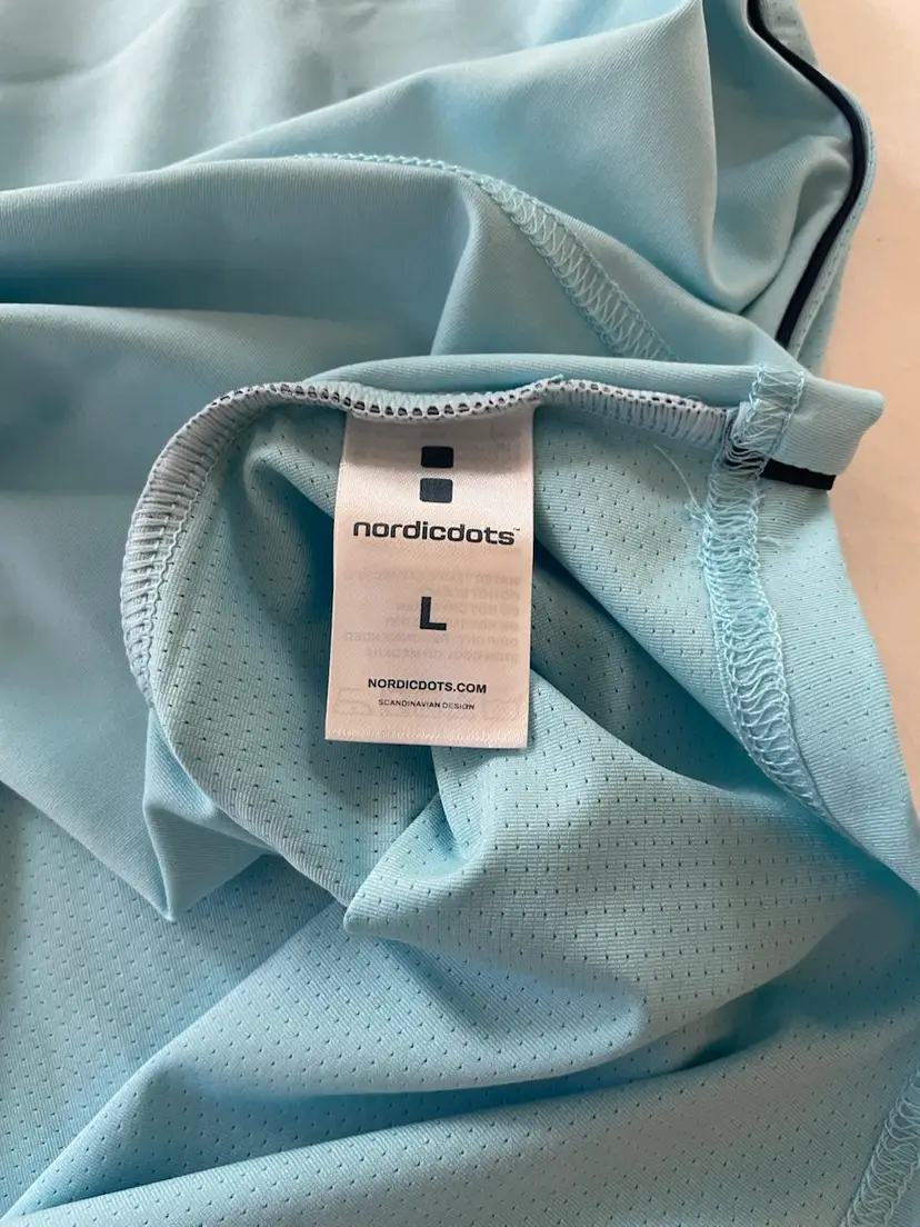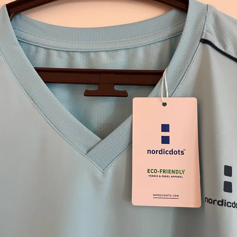 New Nordicdots V-Neck Men’s T-Shirt. Color: Cooling Blue With tags and original bag