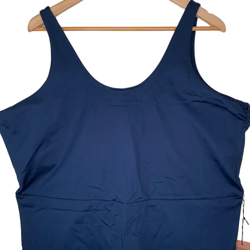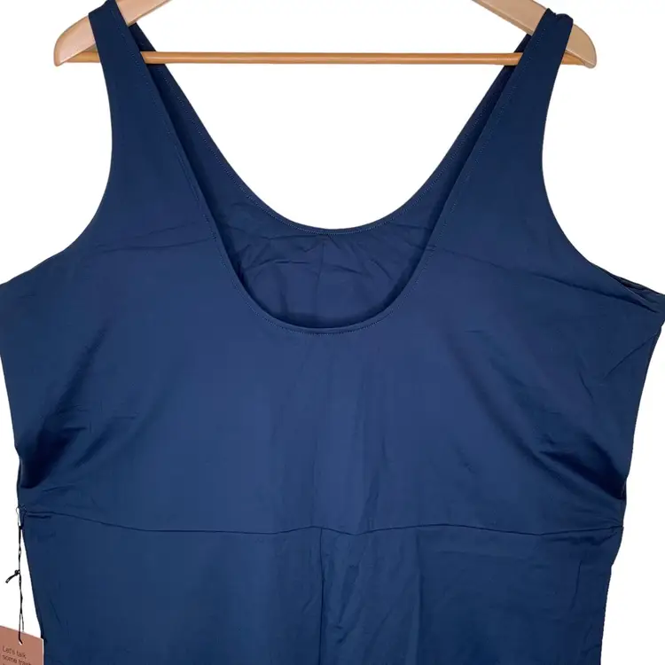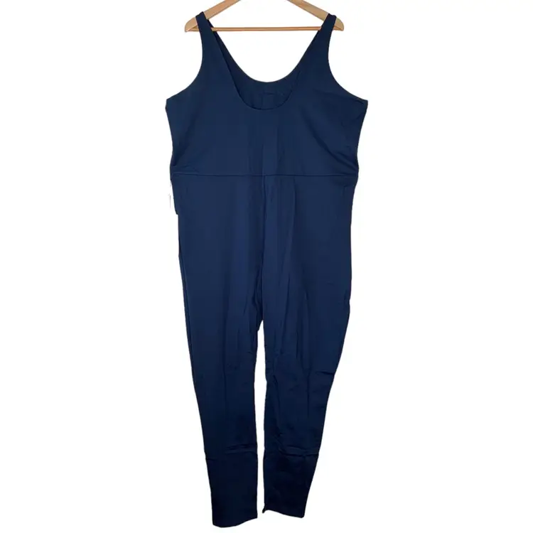 NWT 6XL Girlfriend Collective Midnight Blue Scoop Back Unitard 28.5" Inseam. Features full length, scoop neck, low back, built-in bra, seam designed to hit at natural waist, sweat-wicking compressive fabric. Size 6XL. Color Midnight. New with tags. 79% RPET (recycled plastic bottles), 21% spandex. Measurements (approximate): PTP 24.25”, under bust seam flat across 22”, length from shoulder to bottom 59”, length center top hem to crotch 25.25”, inseam 28.5”. From Girlfriend Collective size chart: bust 57"-60.5", waist 49.5"-53", hip 60.5"-64". Currently retails for $88.