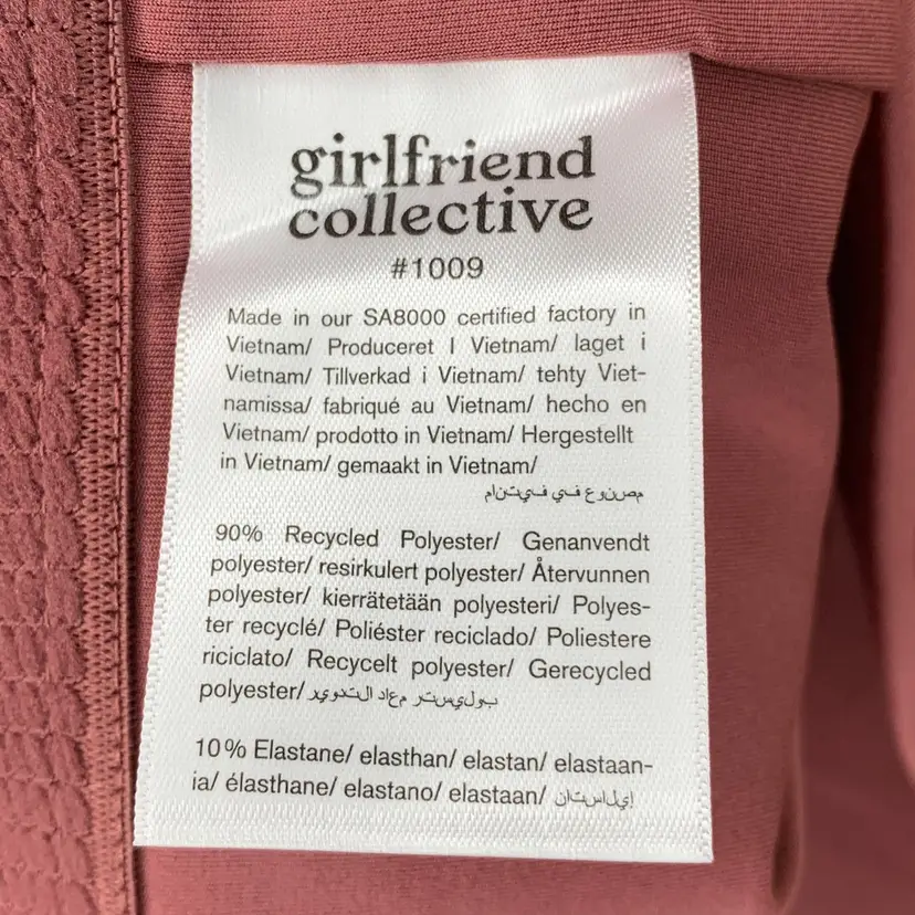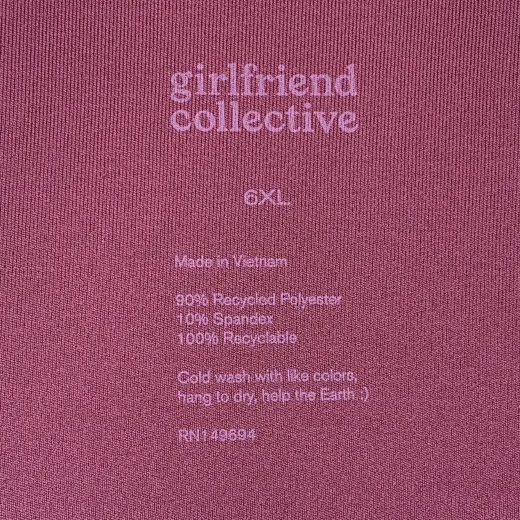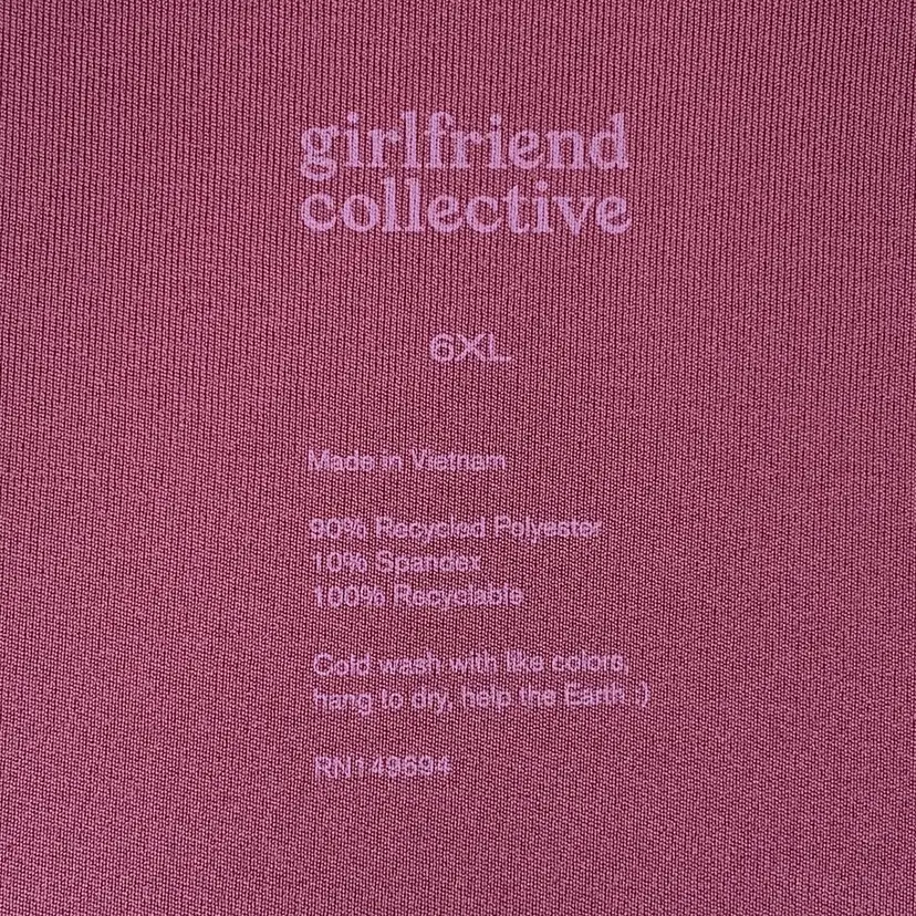Size 6XL. Limited edition color fig, no longer available. New with tags. Measurements (approximate): bra PTP 24.25", band flat across 21.5"; leggings waist flat across 19", length 41", inseam 28.5", front rise 14". From Girlfriend Collective size chart: bra bust 57" - 60 1/2", leggings waist 49 1/2" - 53", hip 60 1/2" - 64".