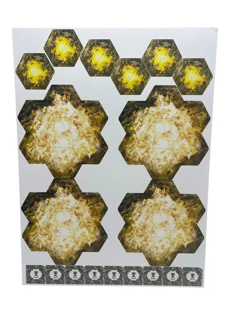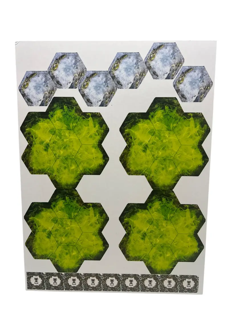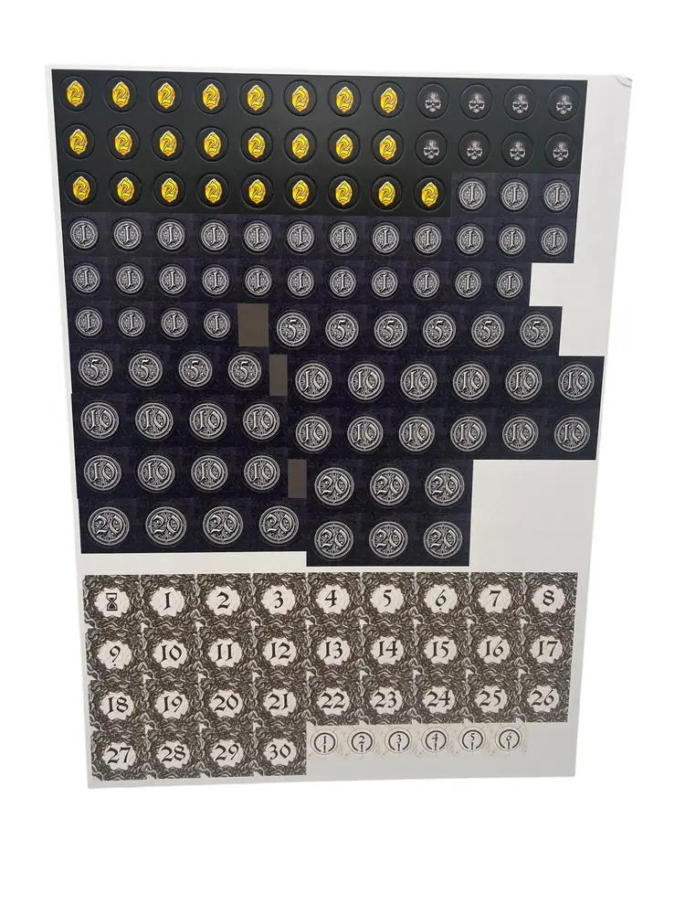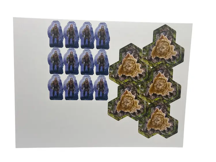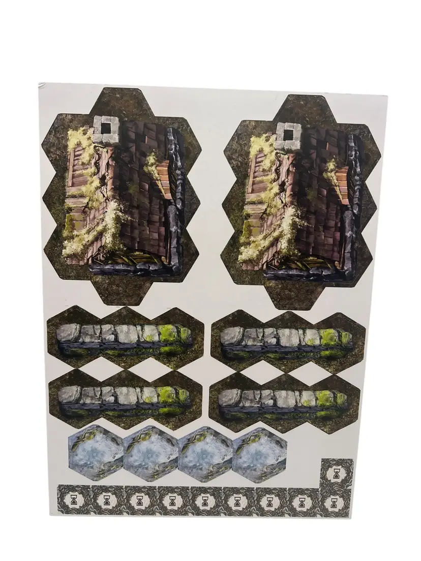 Lot includes one double-sided Oathsworn map board and five unpunched punchboard sheets featuring tokens, terrain tiles, and game components. No miniatures, box, or rulebook are included. Ideal for replacements, customizing, or completing your set.