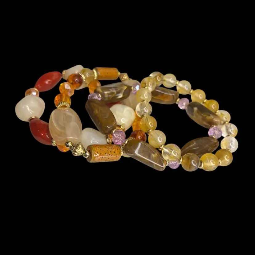 Neutral color resin set of 4 stretch bead bracelets. Will fit comfortably up to a size 7.5