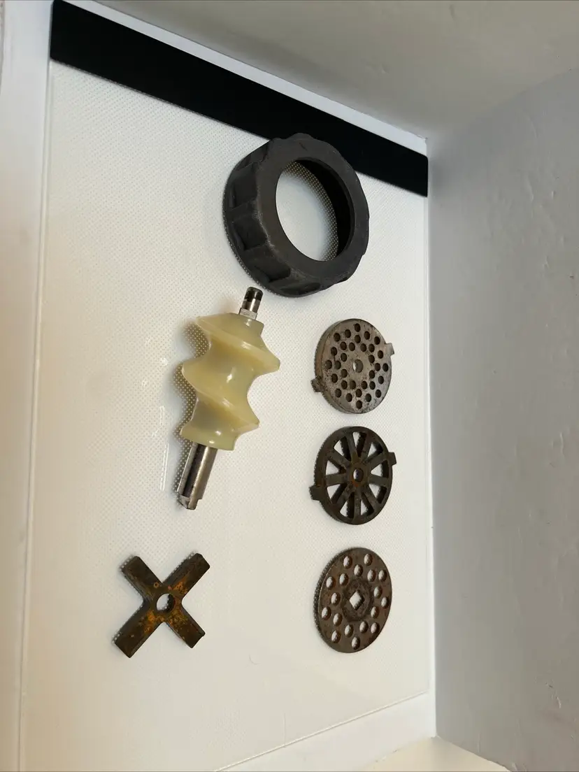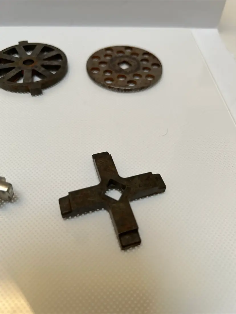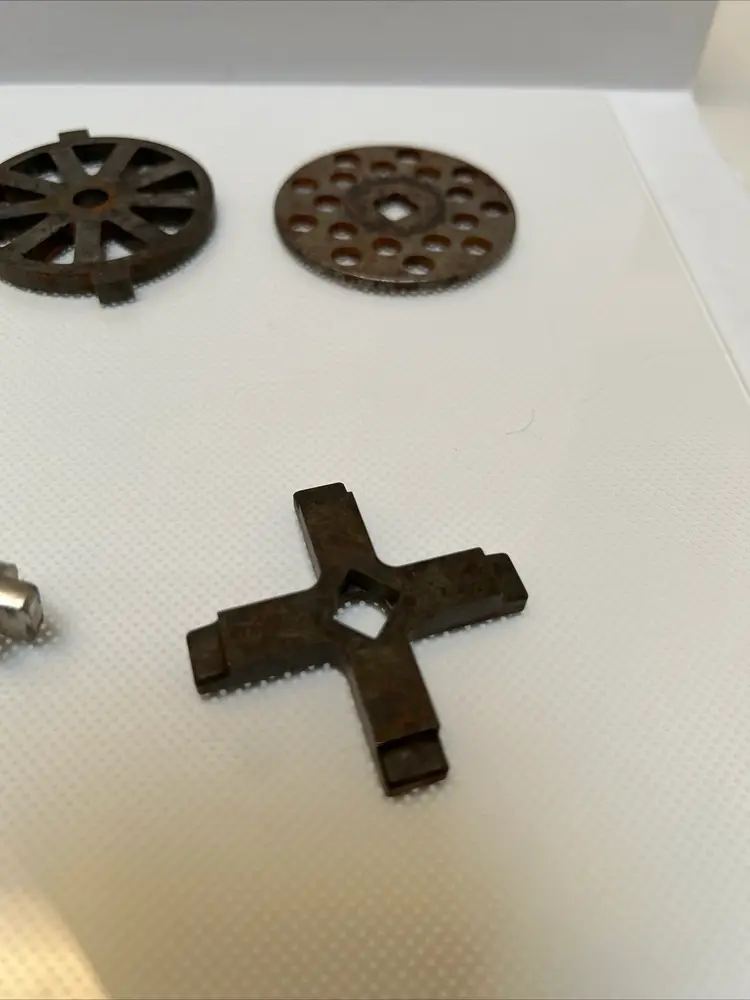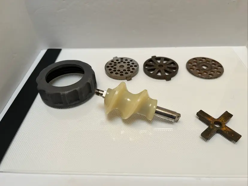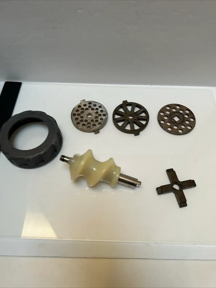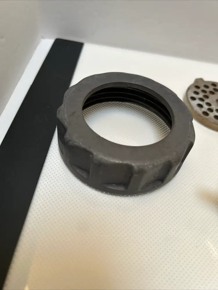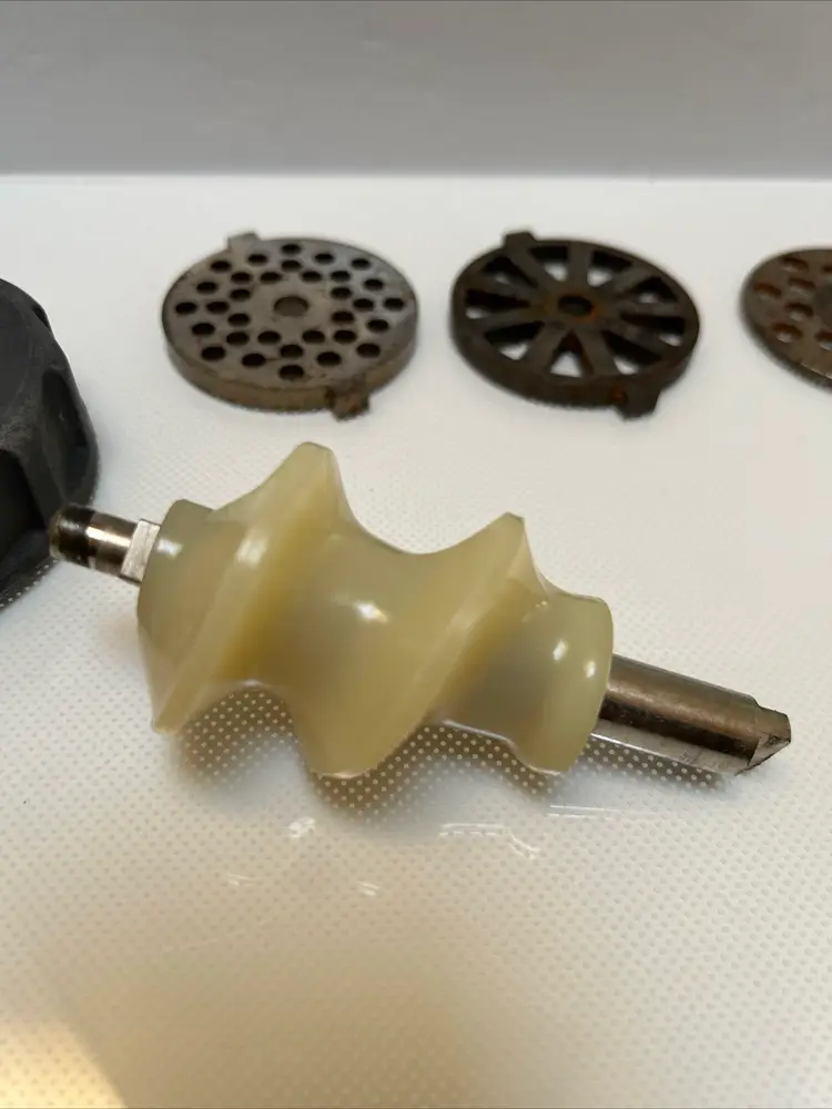 This Oster Regency Kitchen Center Food Meat Grinder Attachment 954-16A is a great addition to any kitchen. It is compatible with the Oster Regency Kitchen Center and can easily grind meat for delicious homemade burgers or sausages. The attachment is in great working condition and is ready to be used for your next culinary adventure.