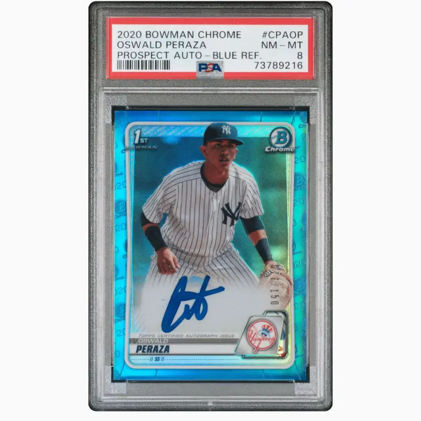 Oswald Peraza 2020 Bowman Chrome True Blue Auto /150 Psa 8 New York Yankees