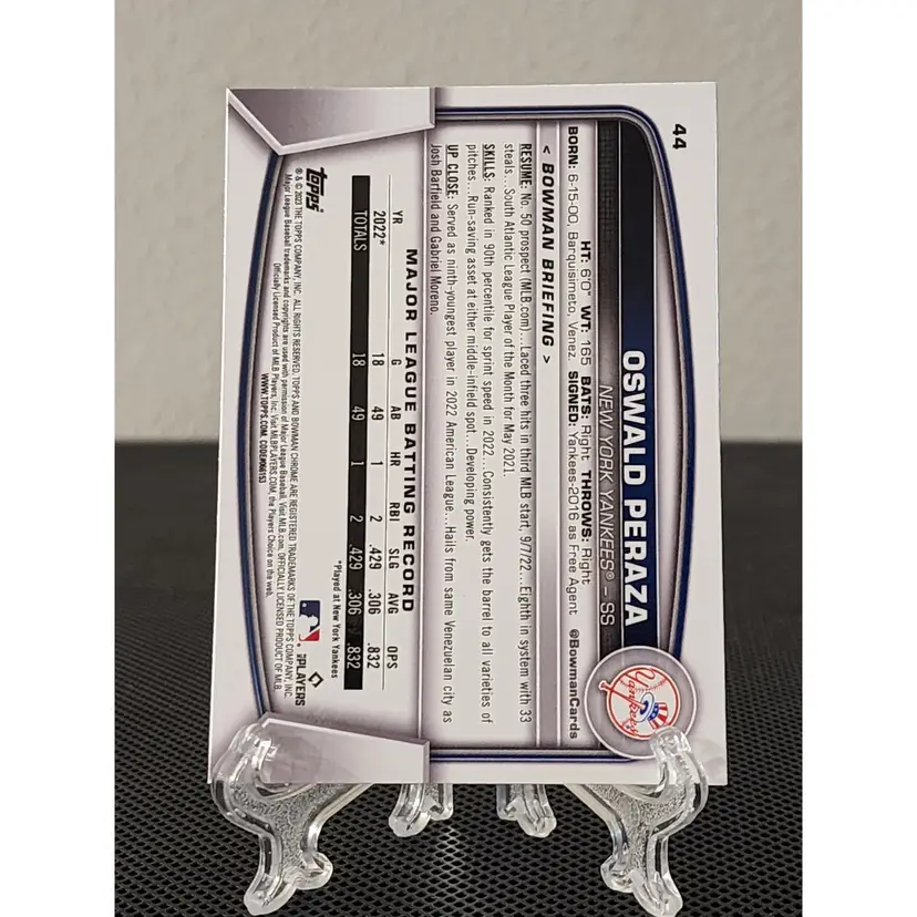 Oswald Peraza 2023 Bowman Chrome Sapphire RC - Yankees - Ships PWE