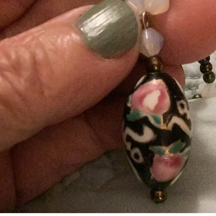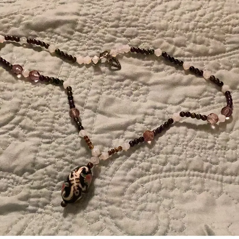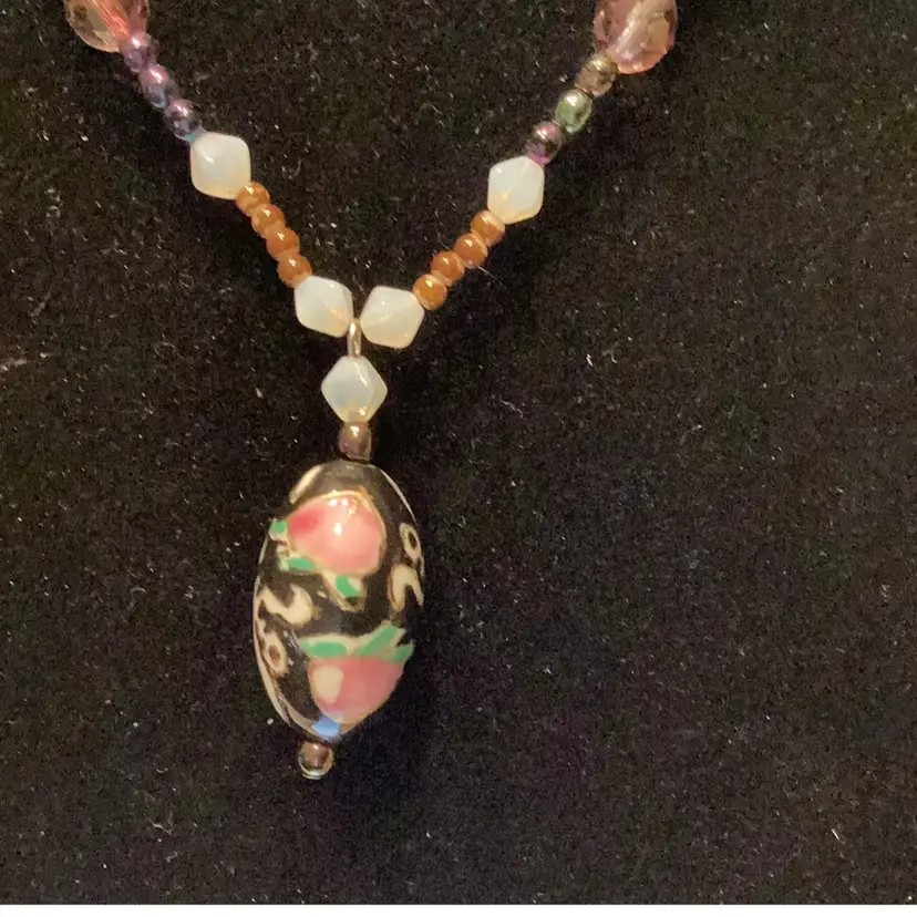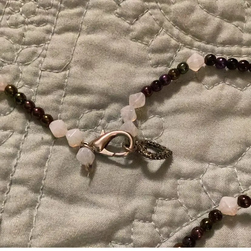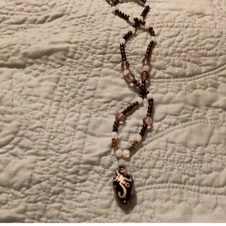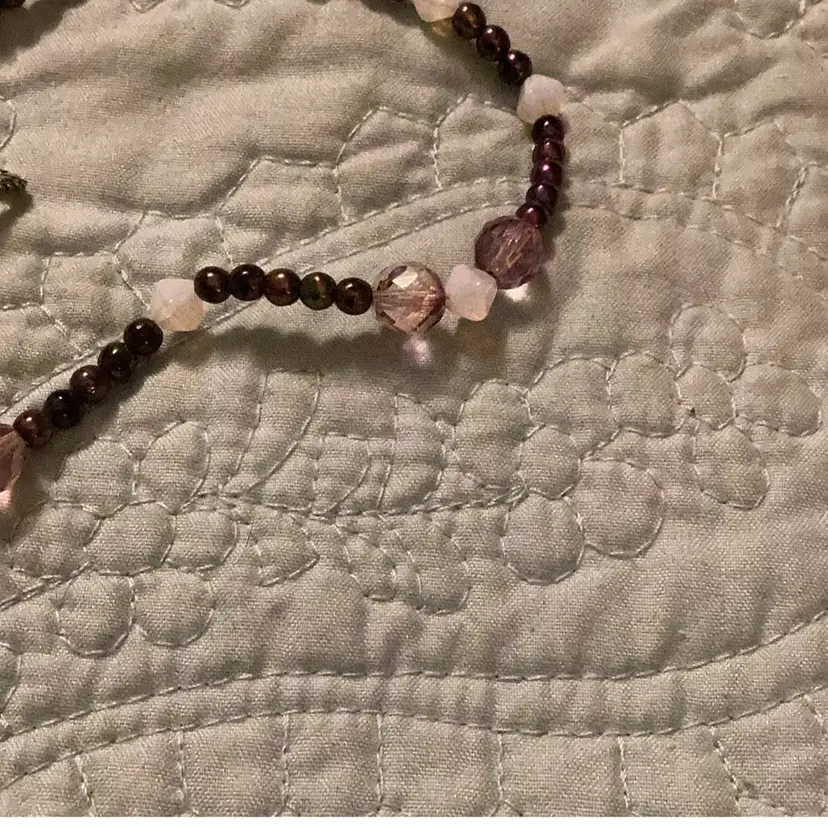it’s really a pretty necklace some of the beads are purpleish and color.
