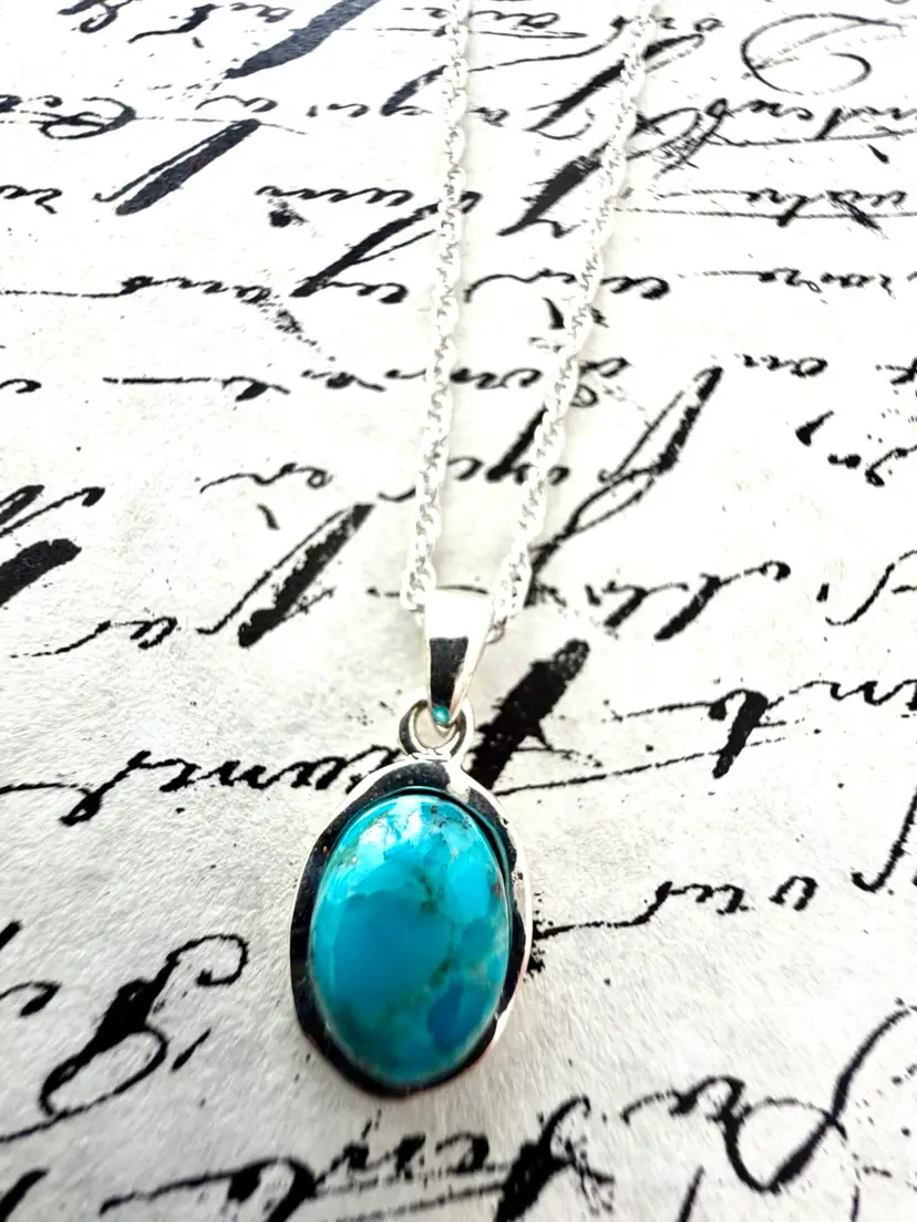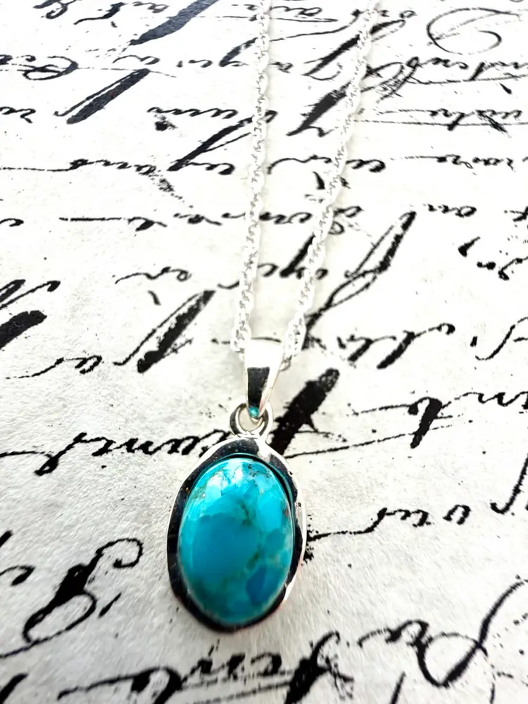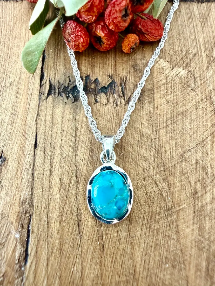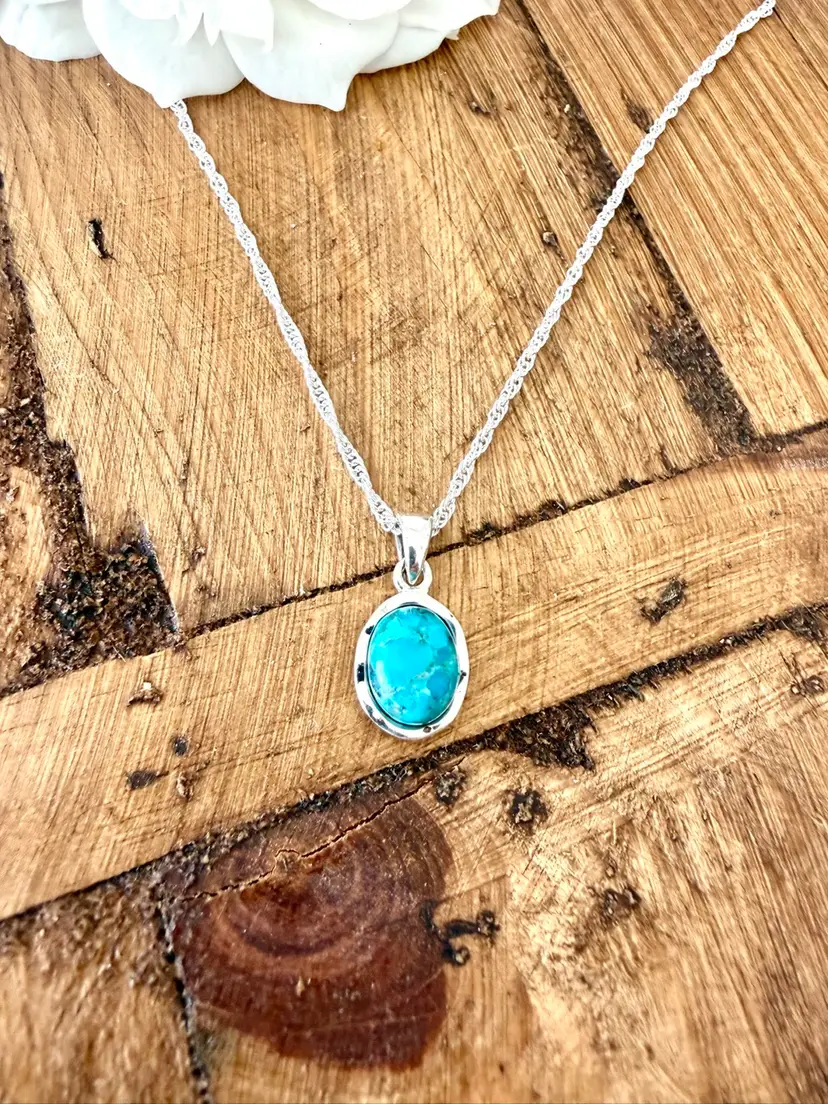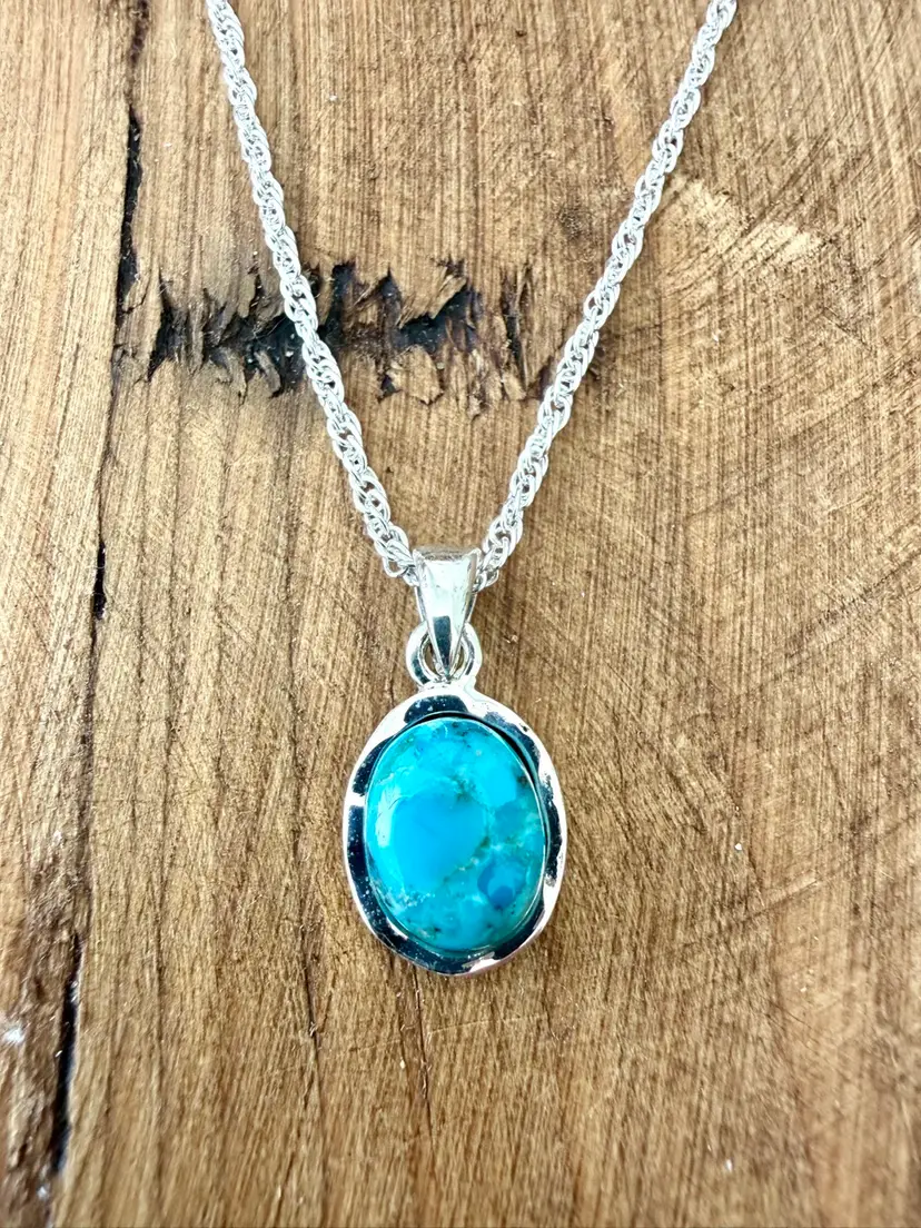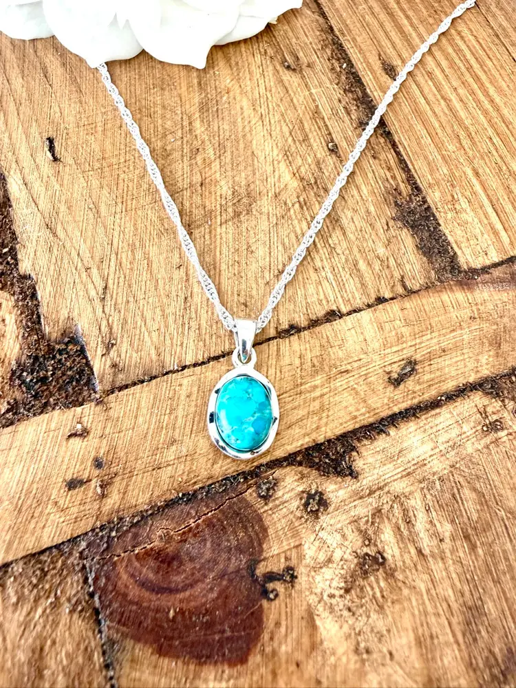 17” Sterling Silver Twist Chain Oval Turquoise Pendant 5/8”x 1/2”