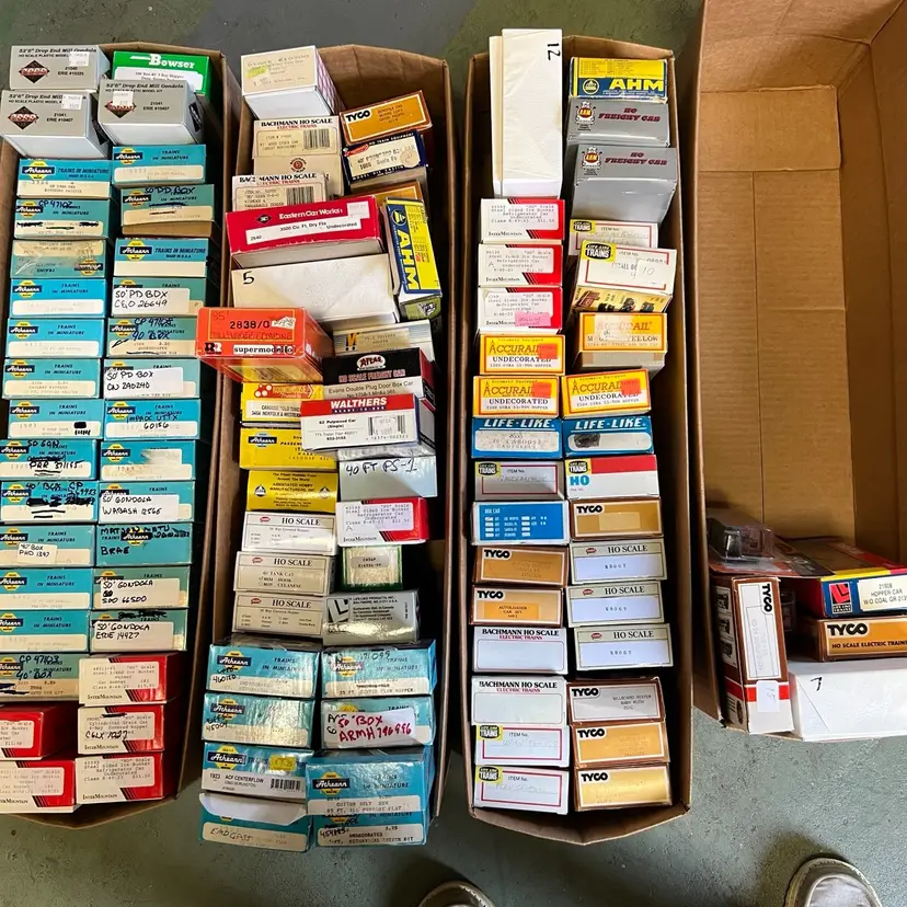 All trains come with boxes. Some boxes are not original brand boxes. Various condition, preowned and dead stock