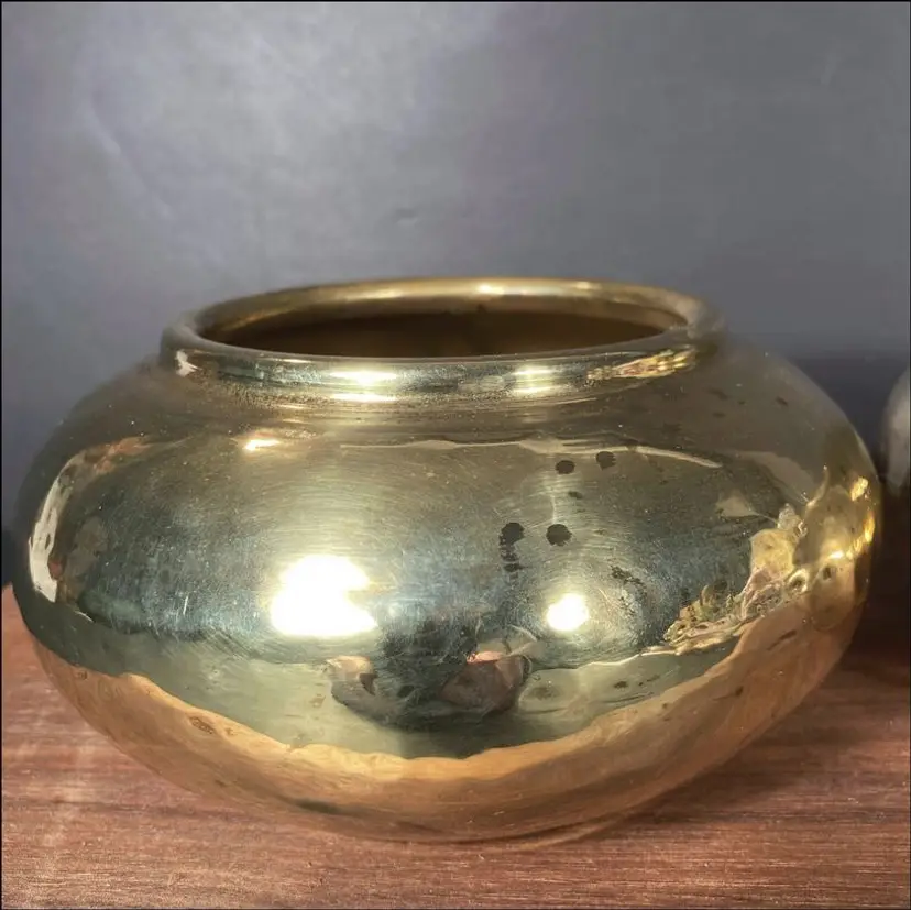 Two vintage hammered brass cachepot - planters - bowls, each 5.75 inches overall diameter and 2.75 inches tall. Offered as a pair.