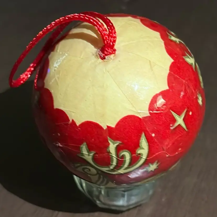 Red, cream and gold reindeer paper mache ornament 9 In circumstances