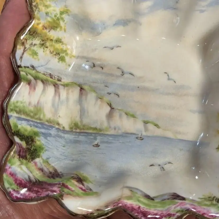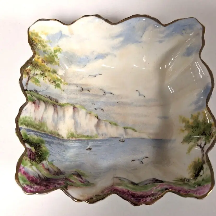 4 inches square. Made in England. Very rare pattern. Just an amazing piece of history and art. Excellent condition with no chips or cracks or issues.