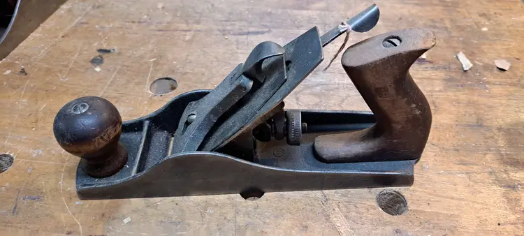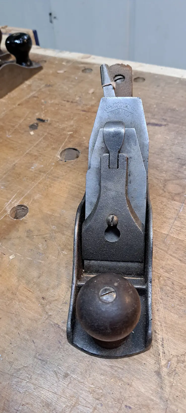 #4 sized ParPlus Made for Metal Product Corp in Conn by Peck, Stow & Wilcox (PS&W) also known as PEXCO maybe sometime between 1924 and the 1950's, not really sure. Same company that makes Worth and bought Keen Kutter from Stanley. Heavy for a #4 size, the soul is pitted and you might be able to sand it smooth, but this also has a stamped metal frog, which I find to be a pain to set up. This is best suited for a Scrub Plane