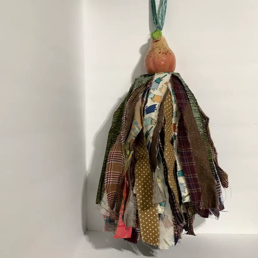 This was made from a single shaker. Measures 15 inches from the top of the shaker to the bottom of the fabric and 21 inches including the ribbon hanger. Weighs 7 ounces. If the actual postage ends up being less than what you paid, you will be refunded for anything over one dollar.
