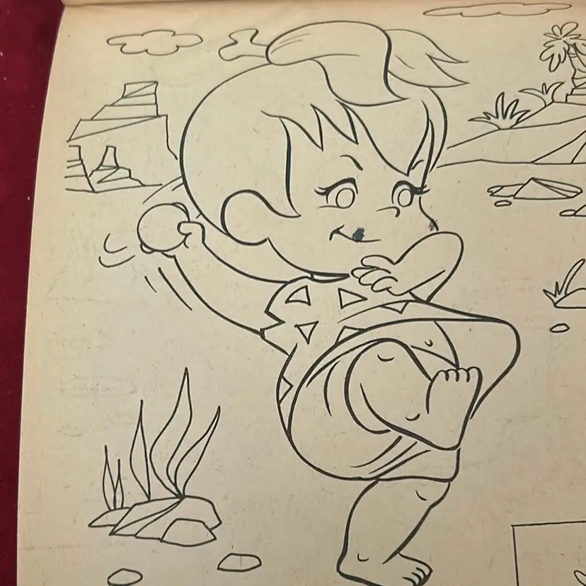 In good shape. Does have yellowing of pages . Some pages have been colored in, but most pages have not. You can flip from one side to the other. Some stains on front cover. From Kmart. 1977.