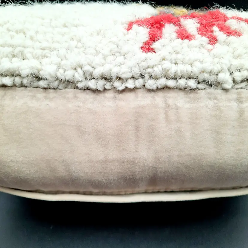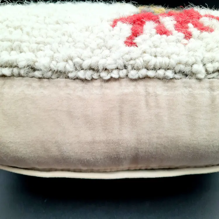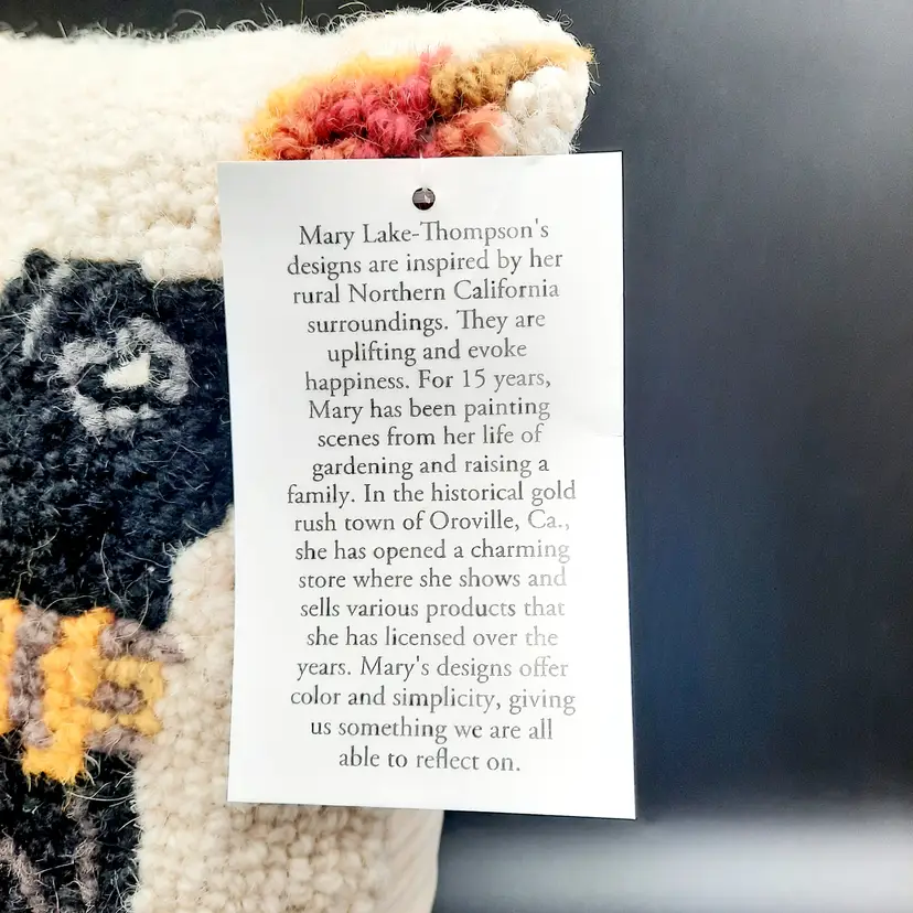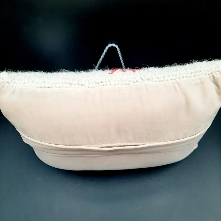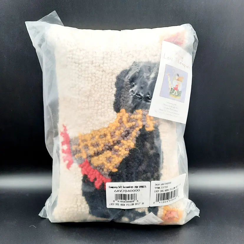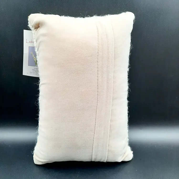 Adorable 8"x12" pillow has original tag and packaging, excellent condition, does have a line down one side that looks light a light ripple in fabric - obviously a mfg flaw as another pillow I have listed has the same line.