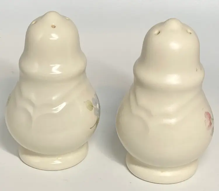 This Pfaltzgraff Tea Rose Pattern Stoneware Salt & Pepper Shaker set features a charming floral design with a rose pattern, making it a decorative addition to your dining table. Standing at 4 inches tall, these multicolor shakers are made of durable stoneware and weigh 4.7 ounces each. The printed backstamp adds a touch of authenticity to this set, perfect for those who appreciate intricate and detailed dinnerware items.