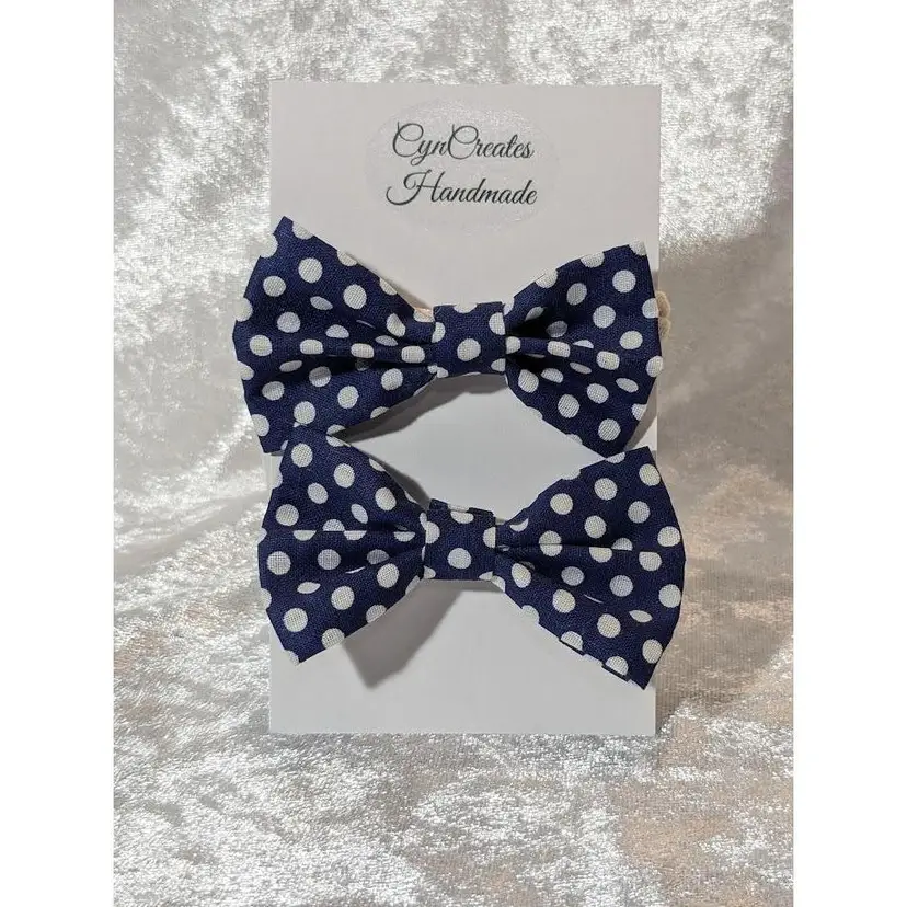 Handmade (by me) out of 100% cotton fabric with an attached ouchless nylon tie that won’t damage the hair. No metal clips or barrettes. This listing is for a set, 2 bows, as shown.