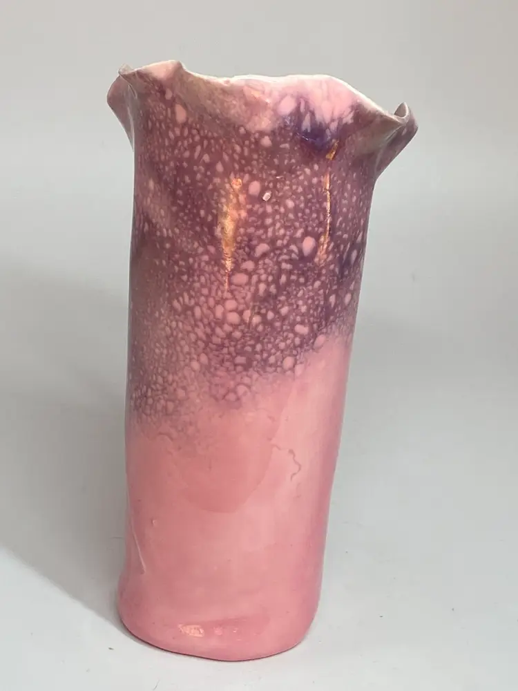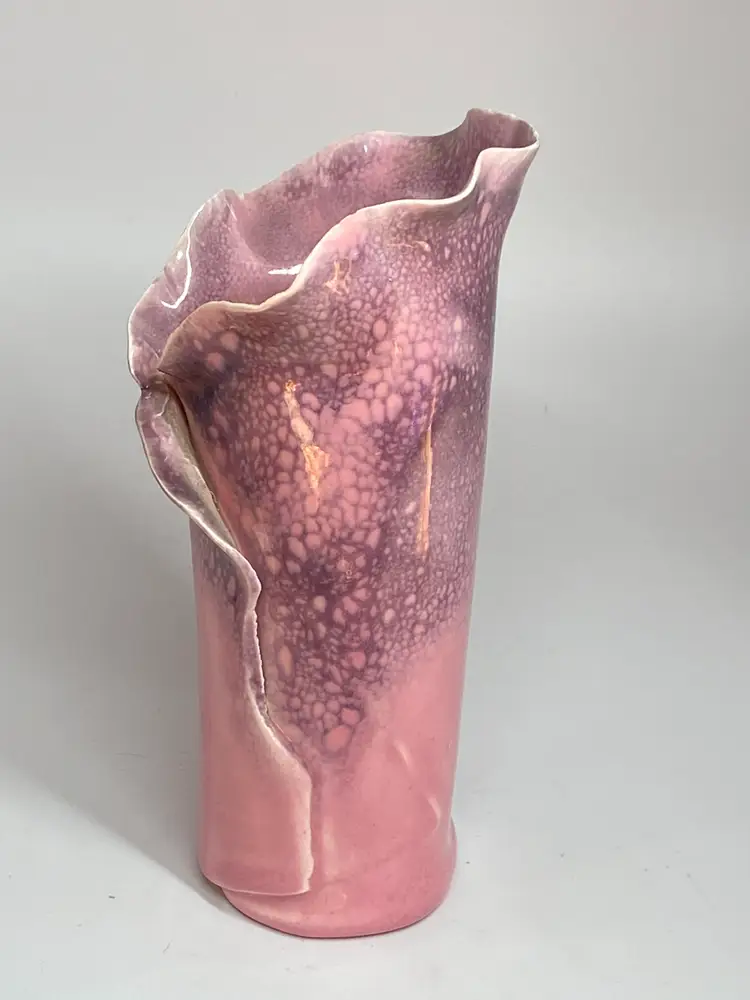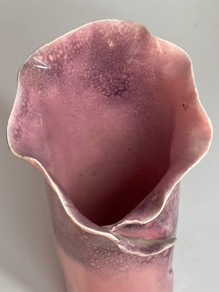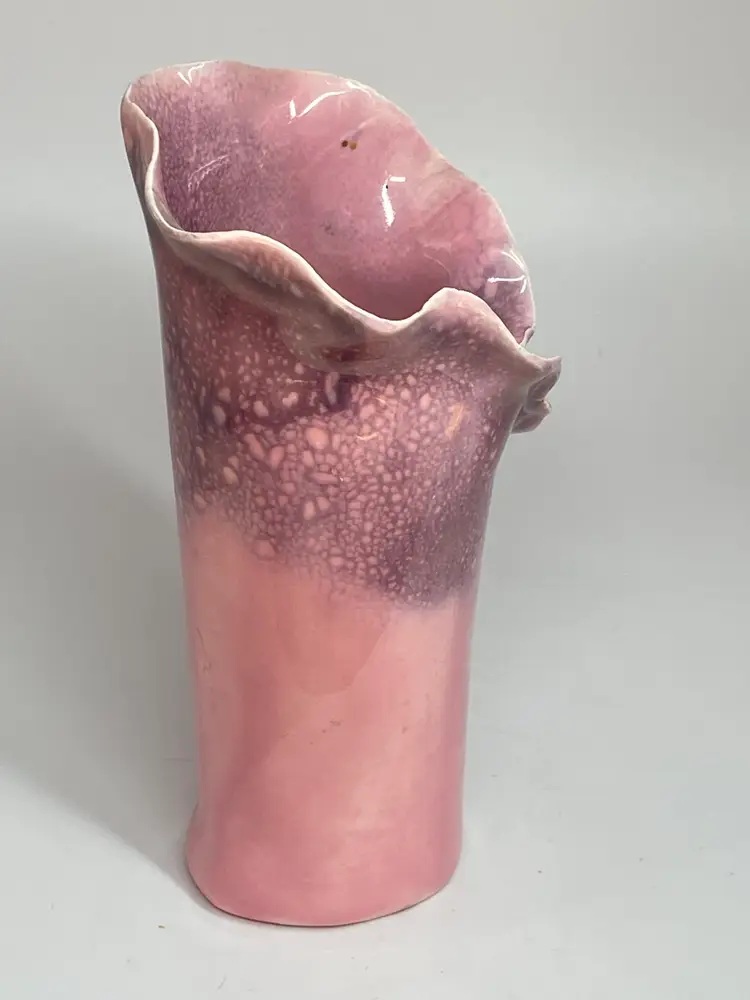 Pink Ceramic Vase, Artist Signed by Jeri, 1988, 5.5" Tall