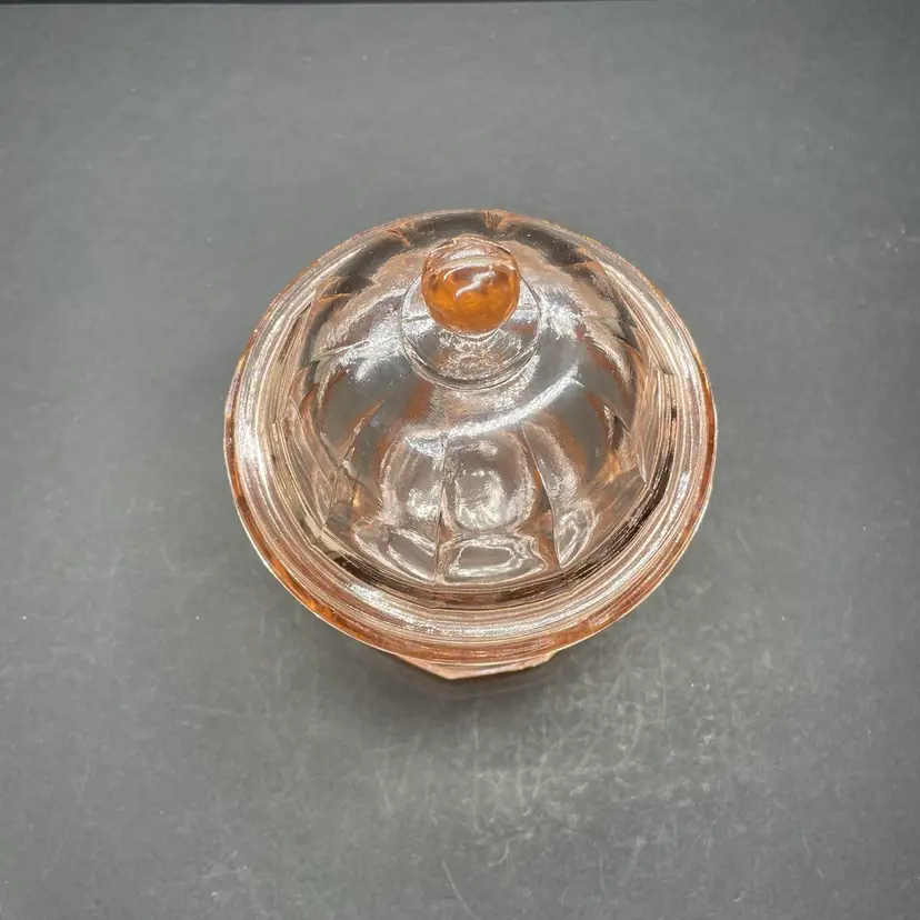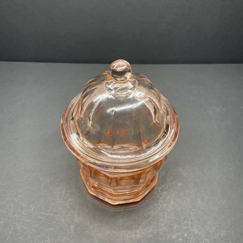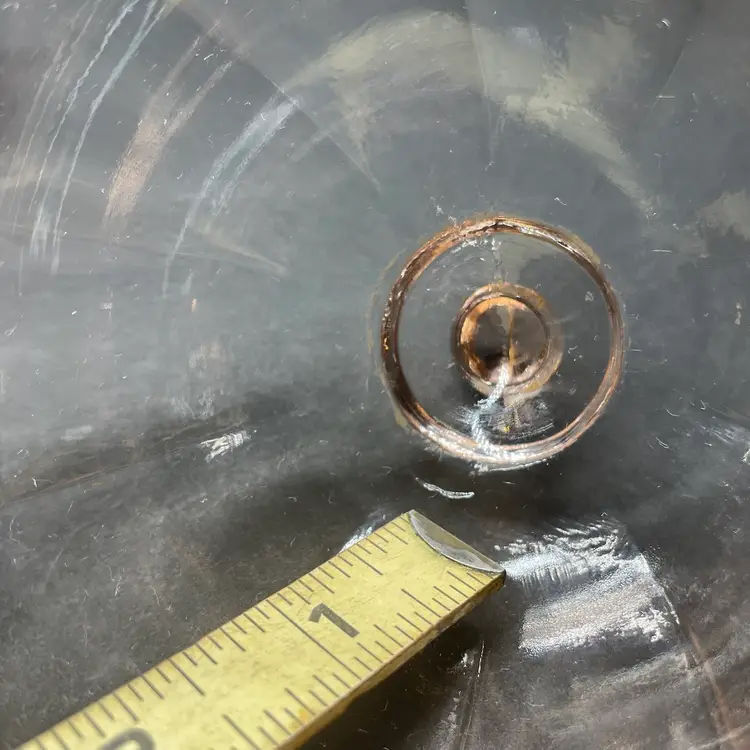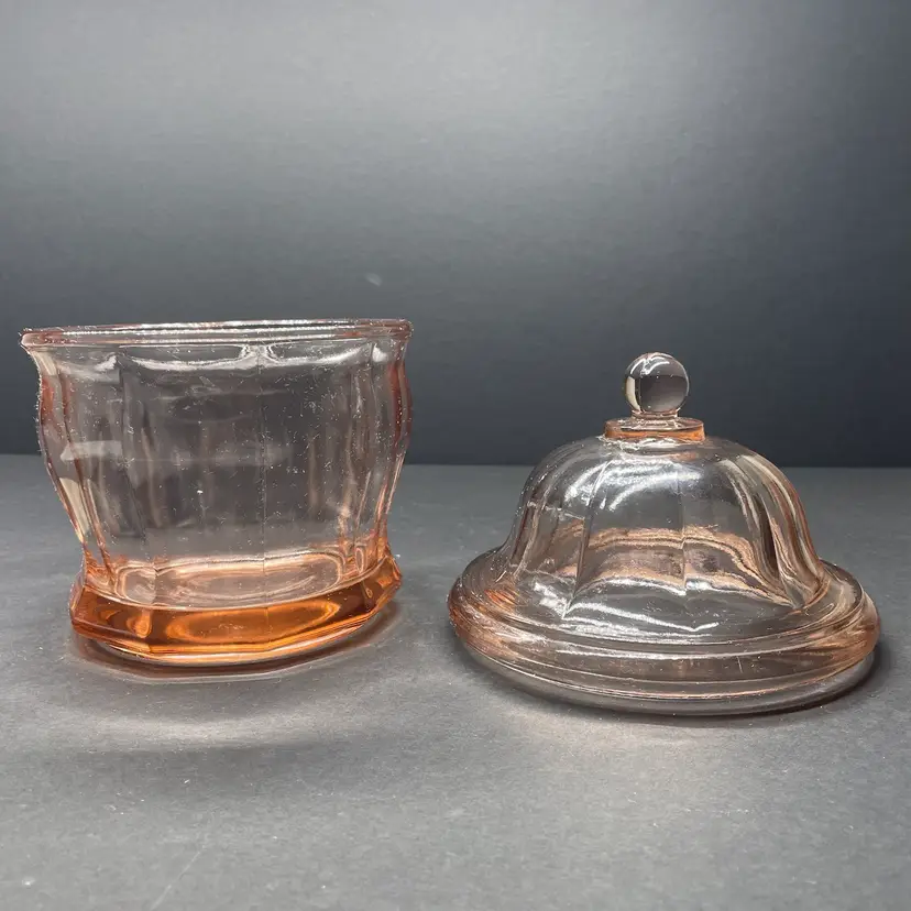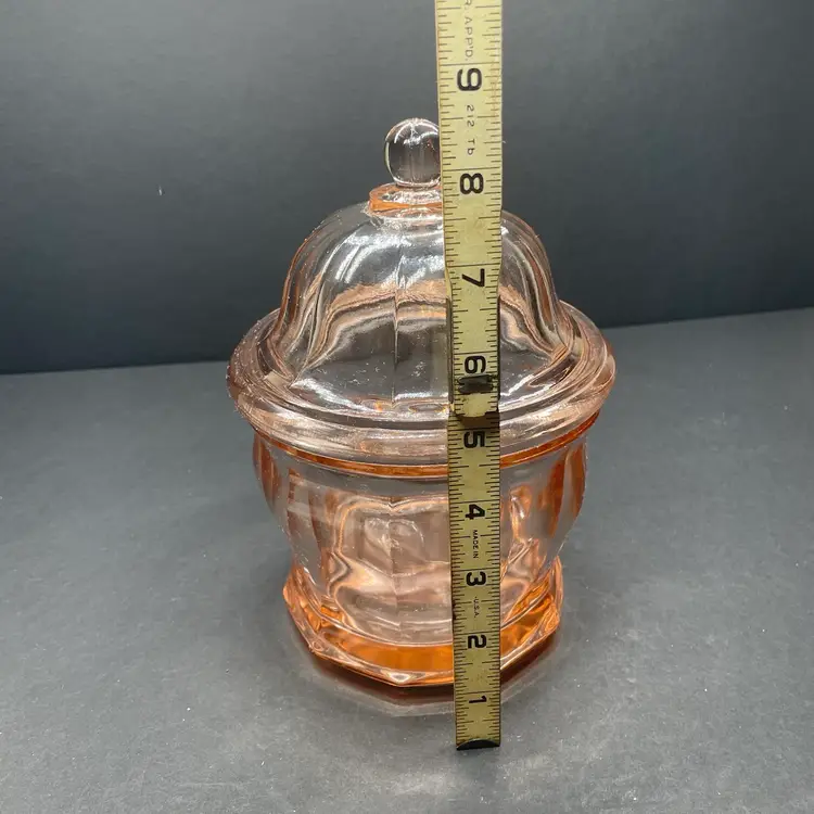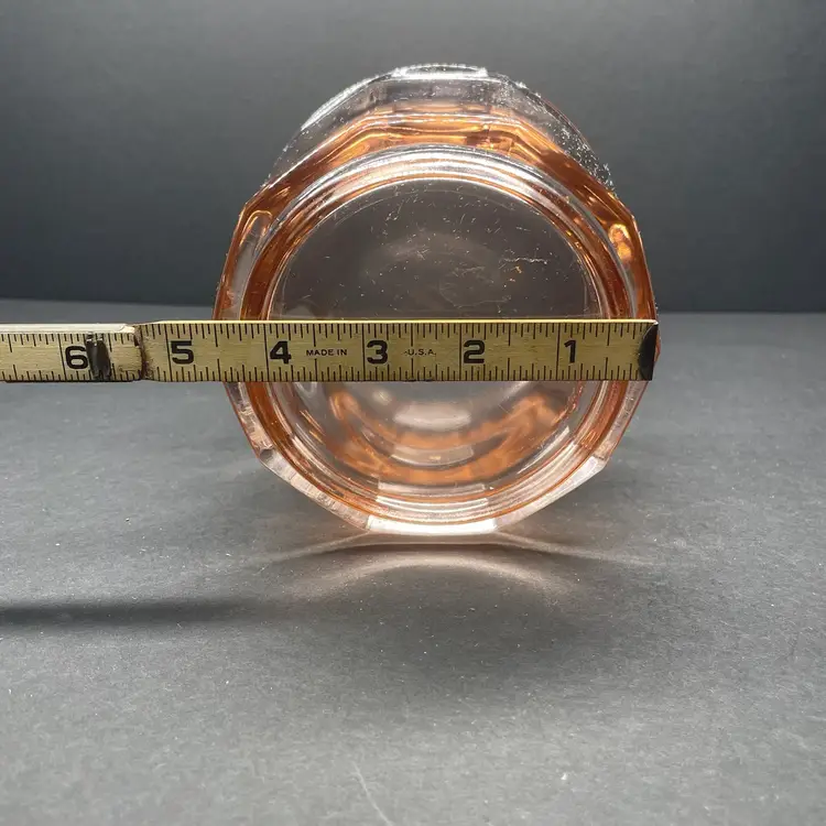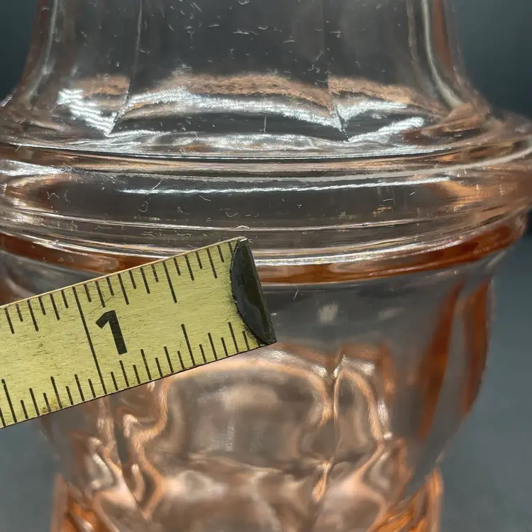 Lovely color!! One tiny chip in the rim as pointed out by the ruler in the close up pic. Also there is a ripple in the glass on the inside of the jar from the manufacturing process.