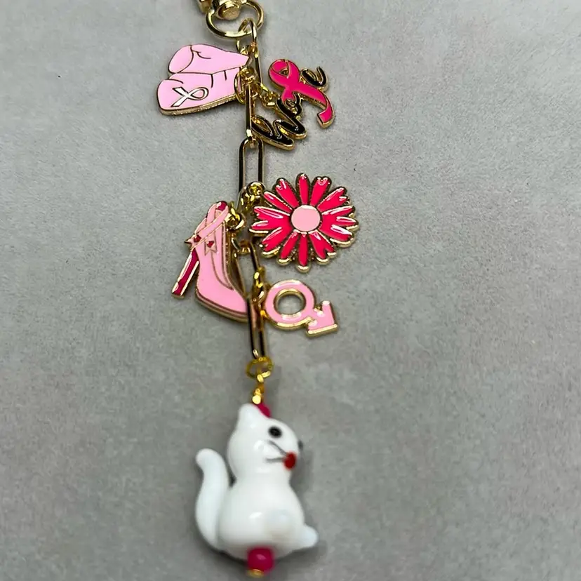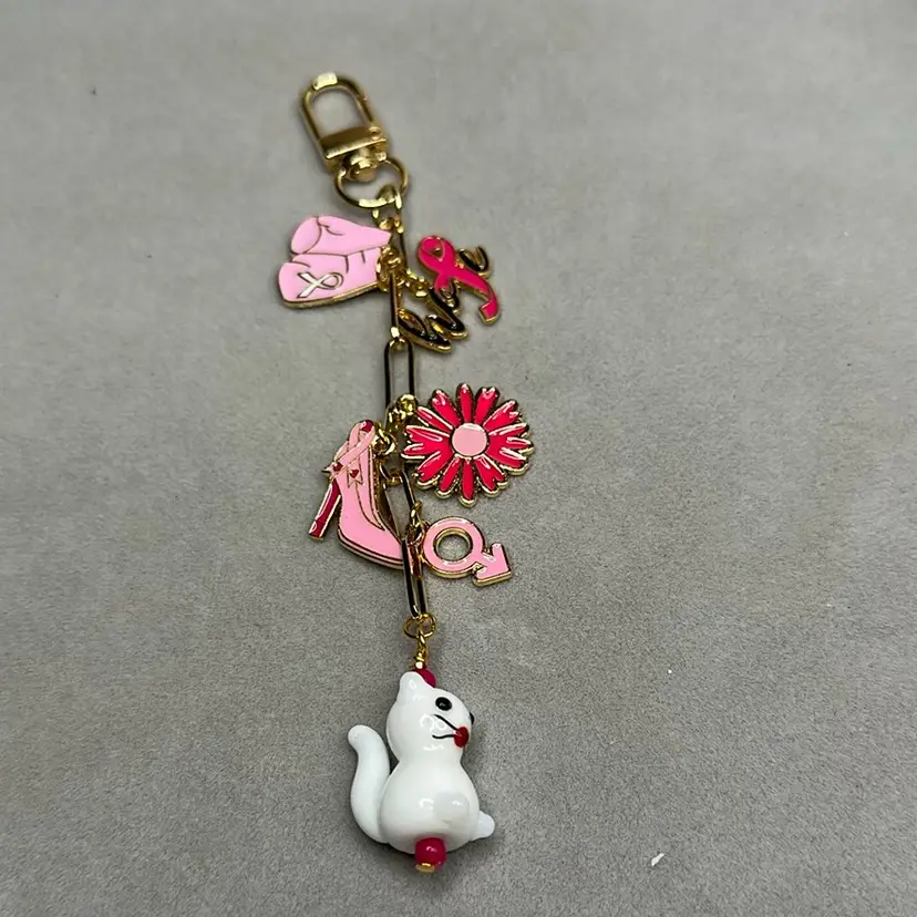 Hand assembled charm. Can be used on purse, backpack, hung on mirror or plants. Show your support for someone who is going through breast cancer.