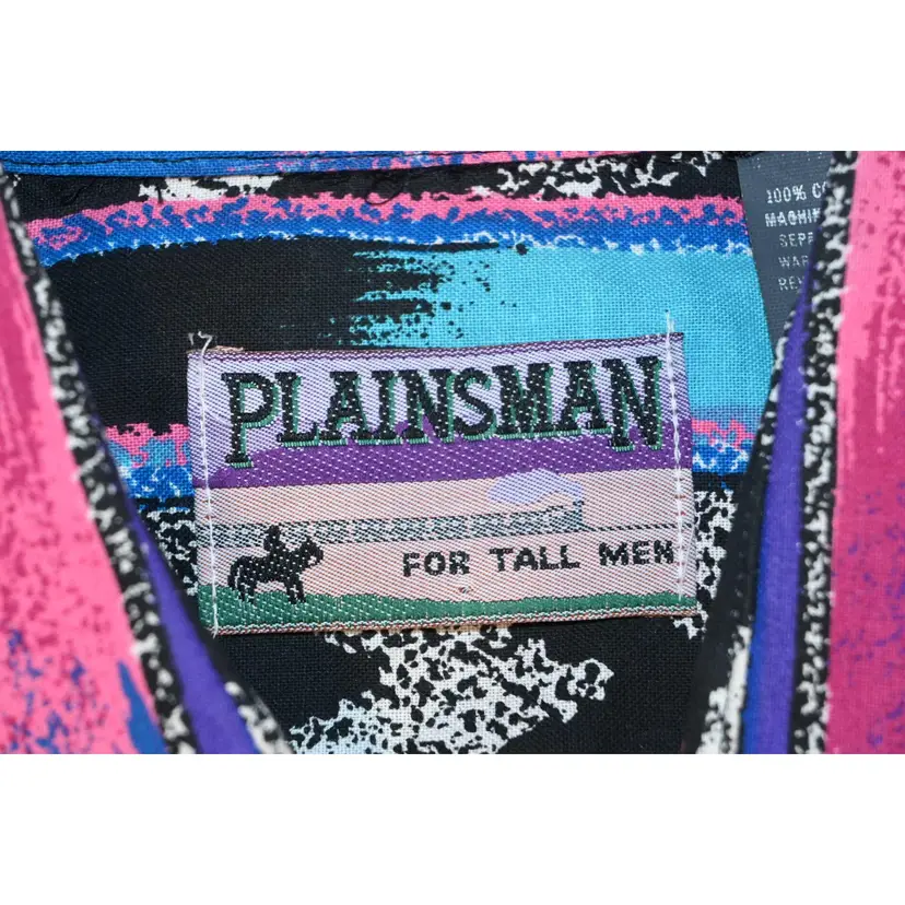 24x34 tall fit, 22.5 in sleeve, western shirt made by the brand Plainsman in the 1990s. It features button closures and two chest pockets