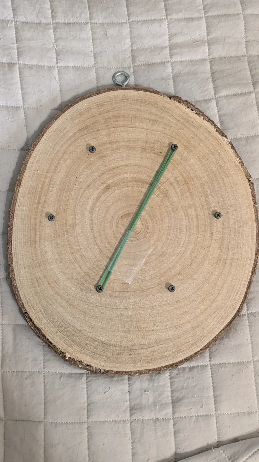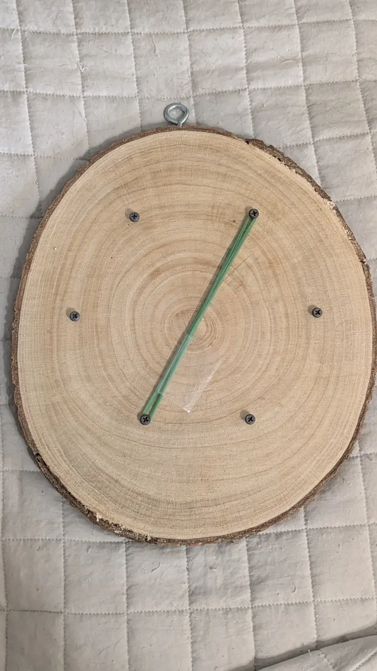 Approximately 14x12" round live edge. Finished with wax on the surface so the wood will last longer with high moisture. This kit has already got a hanger screws for mounting and clear fishing line. Just add sphagnum moss and your plant to the kit to hang.
