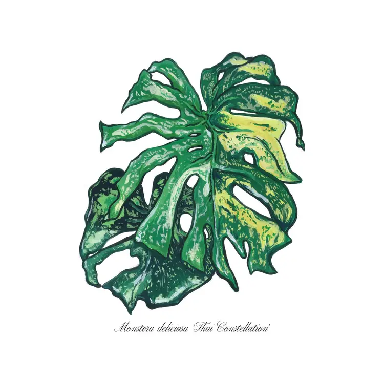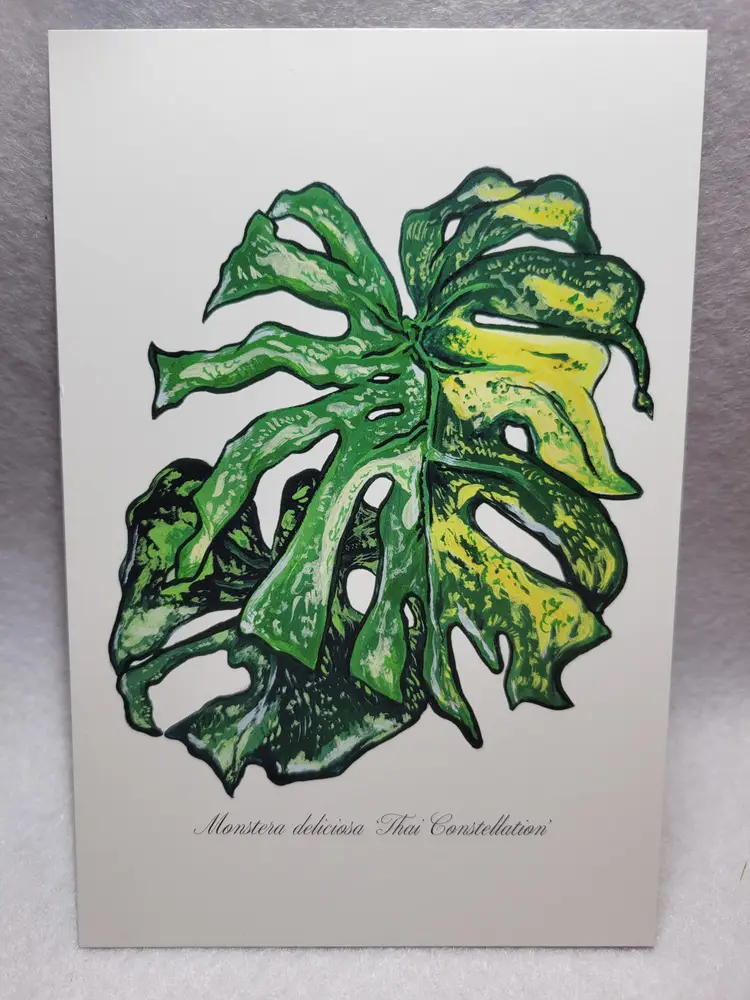 4"x6" prints of gouache botanical illustrations of beloved monstera varieties. Coated front with blank, uncoated back. Each plant is identified with its binomial.