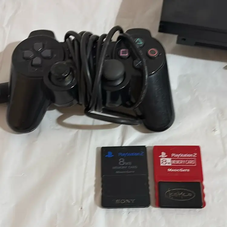 1 controller 2 memory cards Cords This was last played 1 year ago in November. Has not been powered on since.