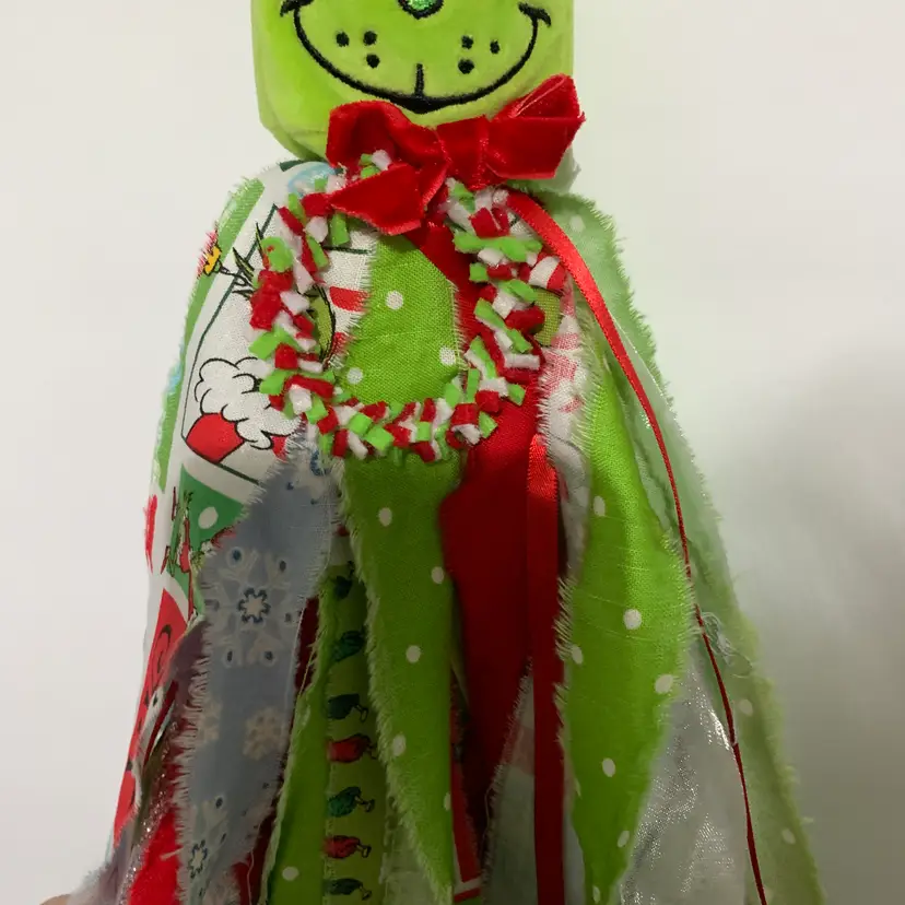 Measures 15 inches from the top of his hat to the bottom of the fabric and 22 inches including the ribbon hanger. Weighs 5 ounces. If the actual postage ends up being less than what you paid, you will be refunded for anything over one dollar.