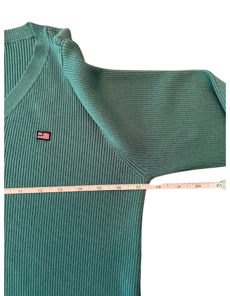 Polo Ralph Lauren Vintage Women’s Rib V-Neck Sweater Size XL Excellent pre-loved condition!! Please note: this is vintage sizing, fits best a Size Medium-Large. Use the measurements below to help determine fit. 80% Acrylic, 20% Nylon Approx Measurements: