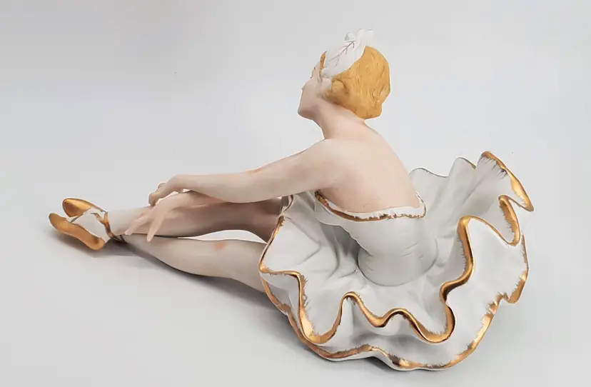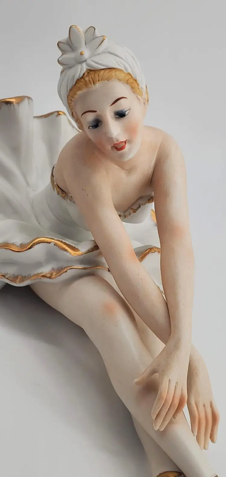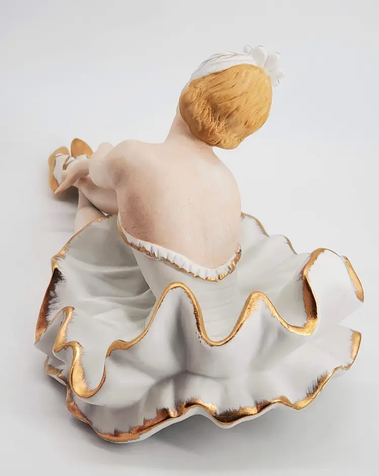 This matte porcelain ballerina is absolutely gorgeous! Made in Japan and mimics the similiar Wallendorf figurine. She is elegant, graceful and beautifully crafted. From the ruffles on her tutu to her gracefully posed hands, this piece is just wonderful.