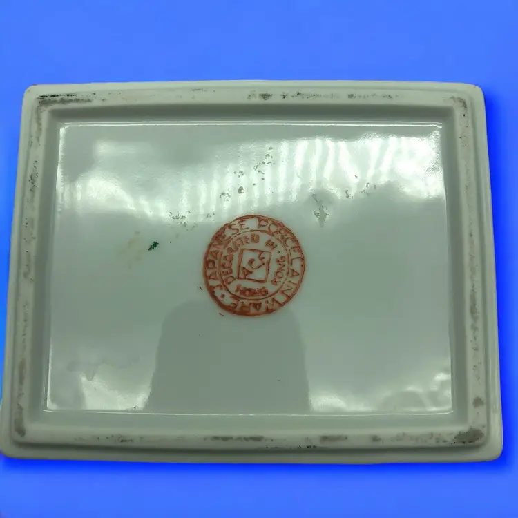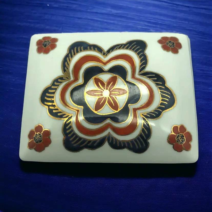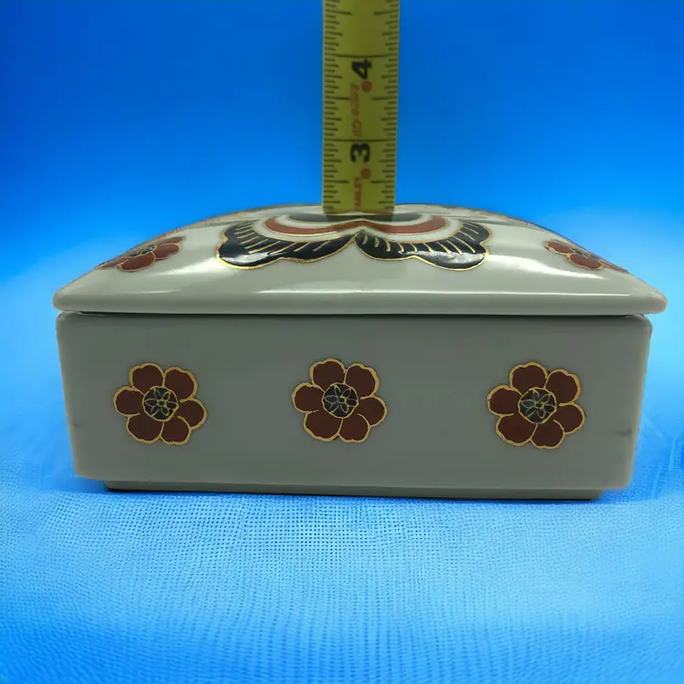 2.5" x 4.5" Floral box Navy Blue, Red with Gold trim hand painted made in Hong Kong trinket box. No damage in great condition.