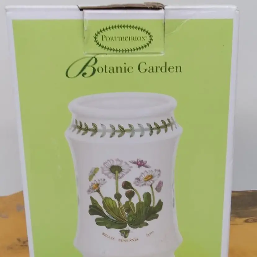 Here's a new in box utensil jar by Portmeirion. It's the daisy pattern. New condition. It's 6 inches tall.