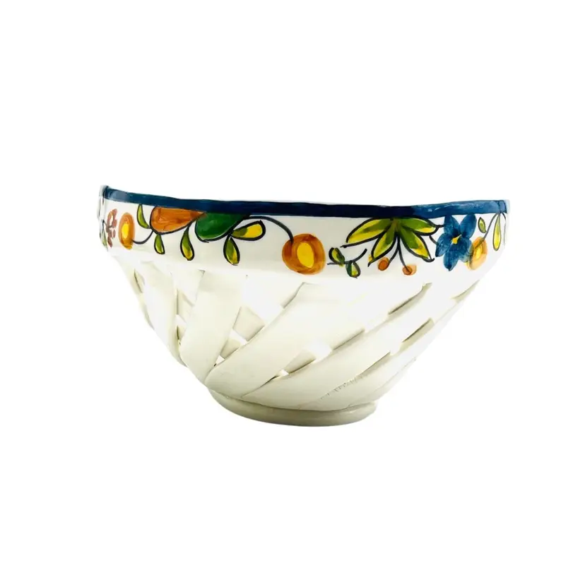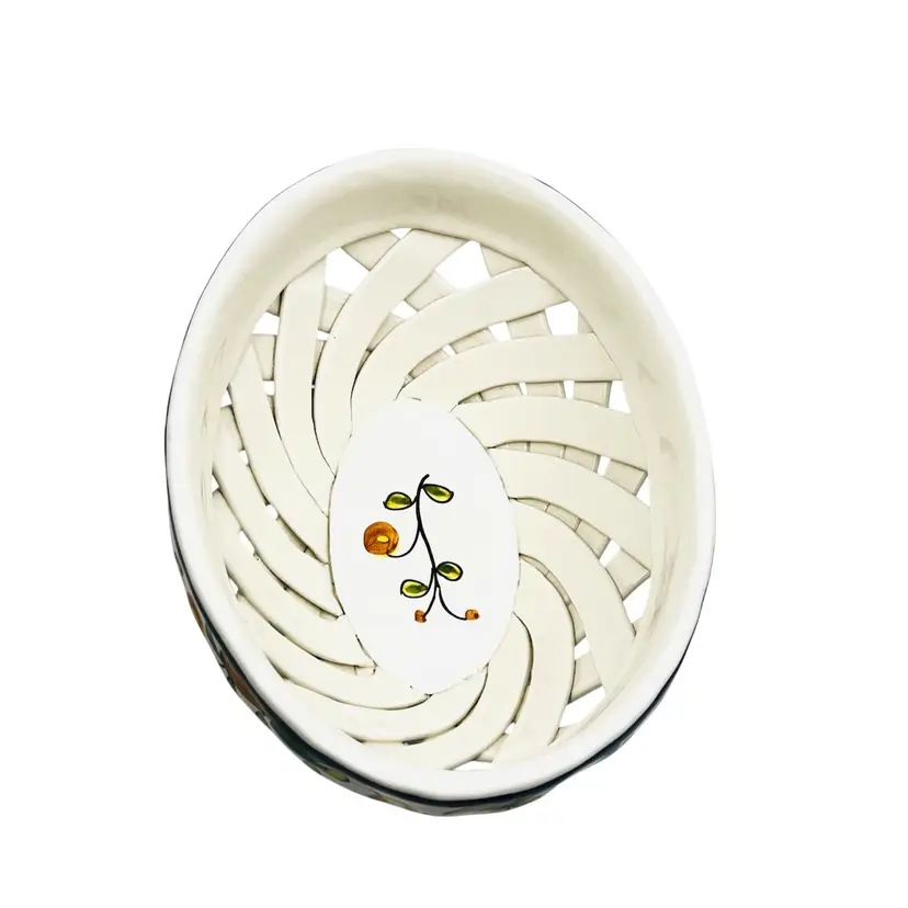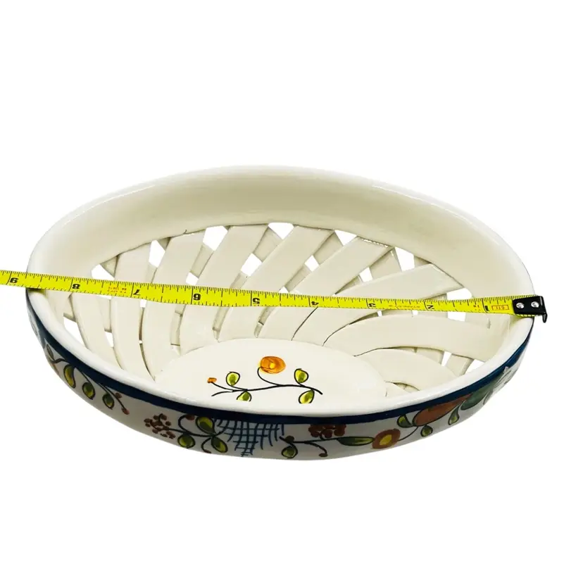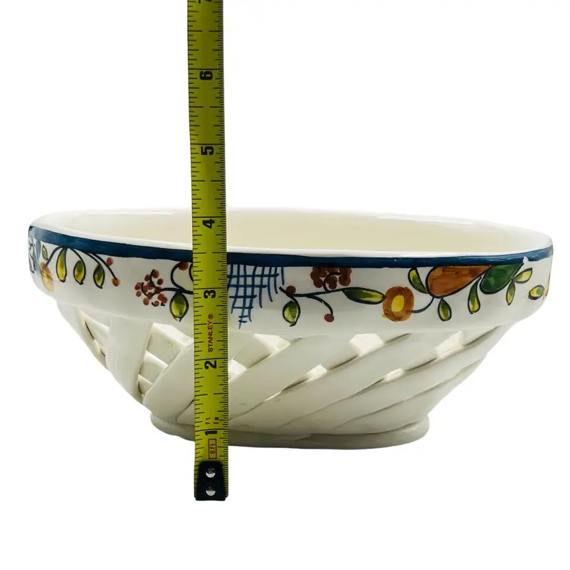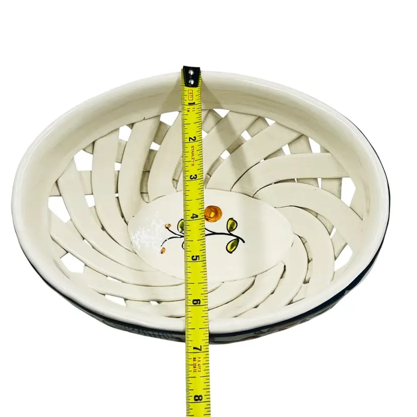 👉 9.5x3.5x6.5 Navy Blue Trim w/ flower 👉Hand Made Lattice Design Hand Painted 👉No Chips or Cracks 👉 Review Photos for Best Condition Description 👉Sold as Shown