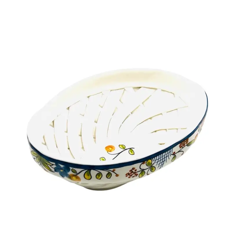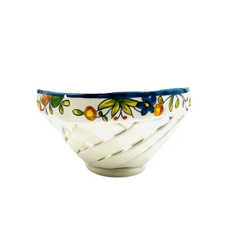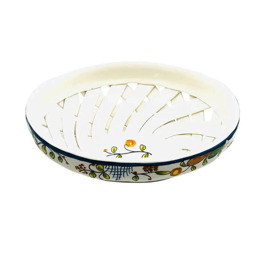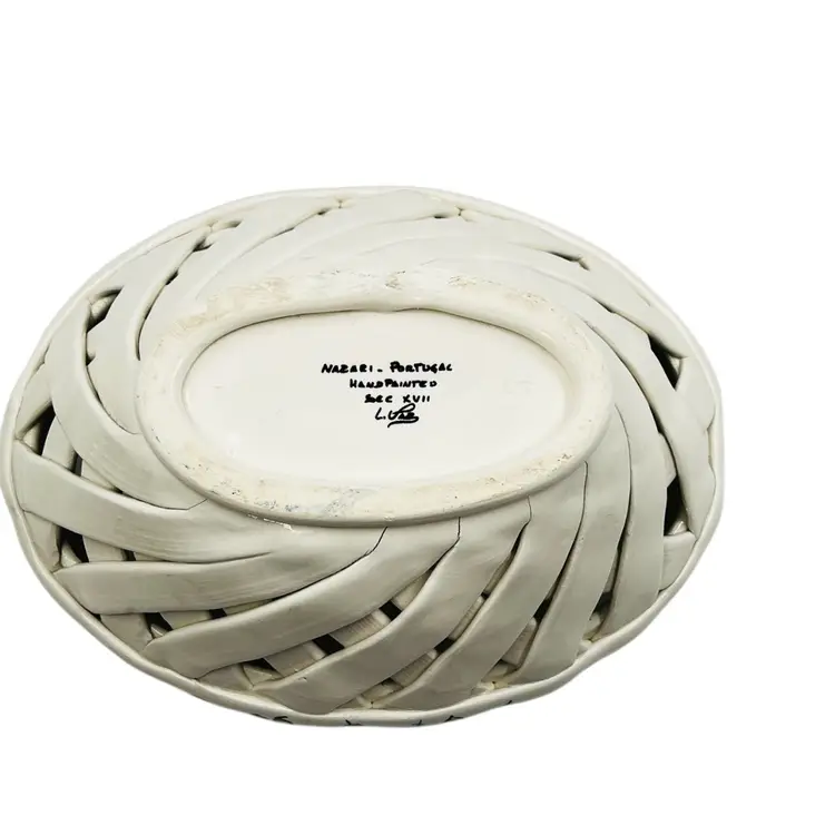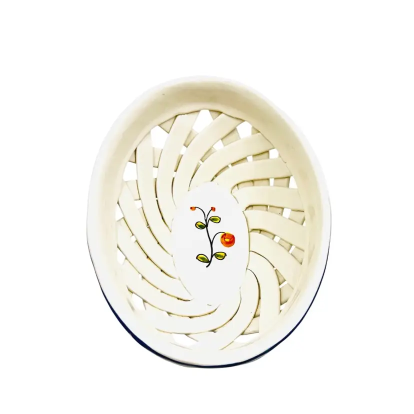 👉 9.5x3.5x6.5 Navy Blue Trim w/ flower 👉Hand Made Lattice Design Hand Painted 👉No Chips or Cracks 👉 Review Photos for Best Condition Description 👉Sold as Shown