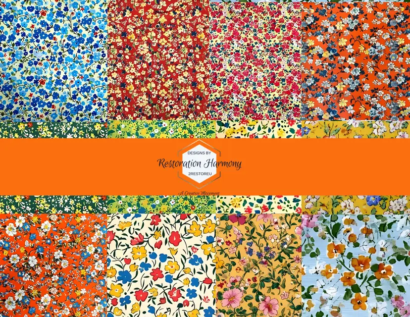 Bring a burst of prairie charm to your digital projects with this vibrant set of digital calico prints! Inspired by the cheerful florals and ditsy patterns found in vintage prairie dresses, feed-sack fabrics, and patchwork quilts, this collection is full of sunshine and nostalgia. Each pattern blends classic country style with modern color pops — perfect for junk journals, card making, fabric-inspired tags, planner pages, and digital paper crafting.
