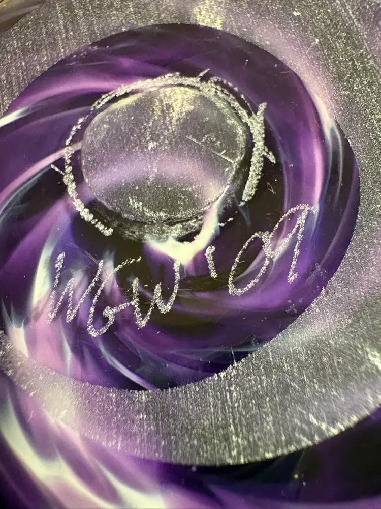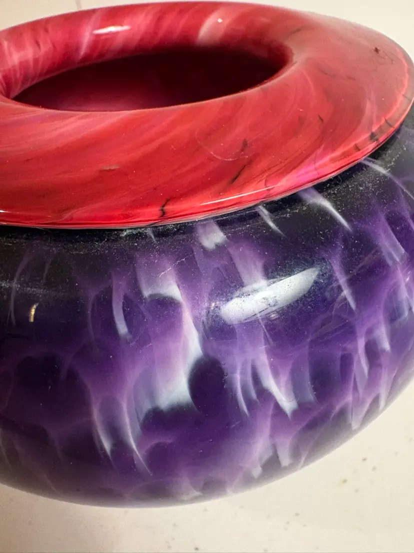 The Purple and Red Glass Vase from Wimberly Glassworks is a stunning piece of decorative pottery and glassware. Crafted from high-quality glass, this vase features a beautiful combination of purple and red colors that adds a touch of elegance to any space. The brand's reputation for quality and craftsmanship ensures that this vase is not only aesthetically pleasing but also durable and long-lasting. Perfect for displaying flowers or as a standalone decorative piece, this vase is sure to make a statement in any home or office setting. Signed by the artist.