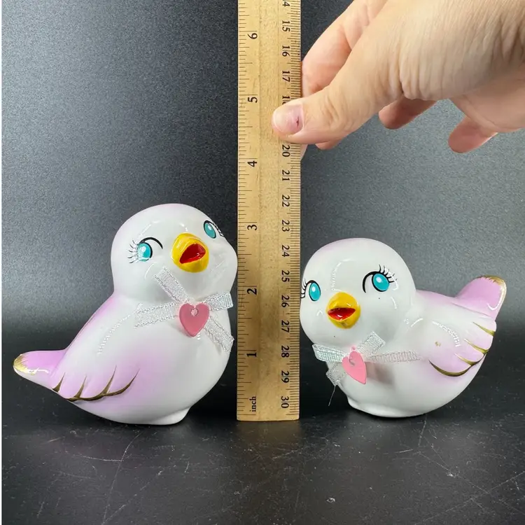 Height is approximately 3.5” and 2.5” Do have little holes in the ceramic can be seen In the photos. Aren’t signed or marked