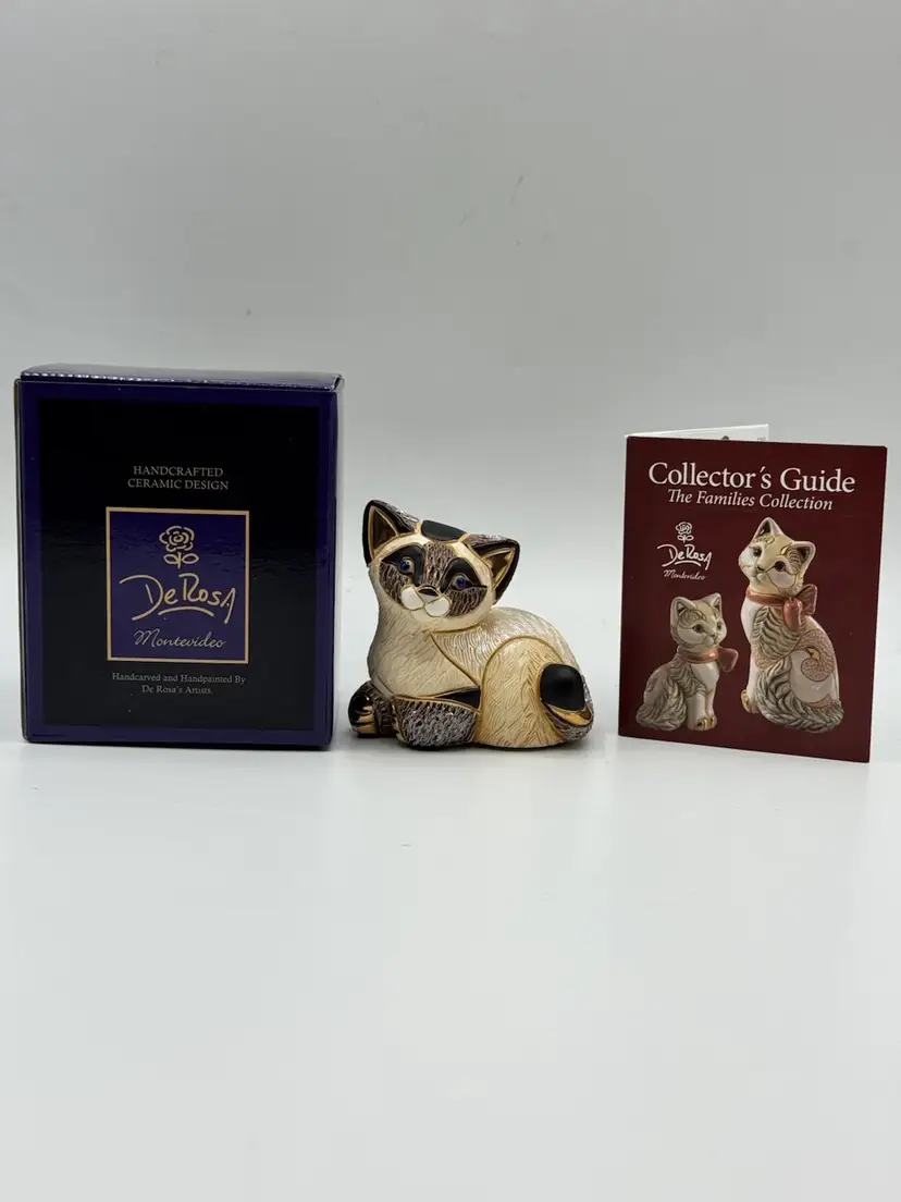 Add a premium addition to your figurine collection with this stunning piece: the DeRosa Rinconada “Siamese Kitten Resting” #F322B brand new, never displayed, in the original box, with certificate & brochure included.