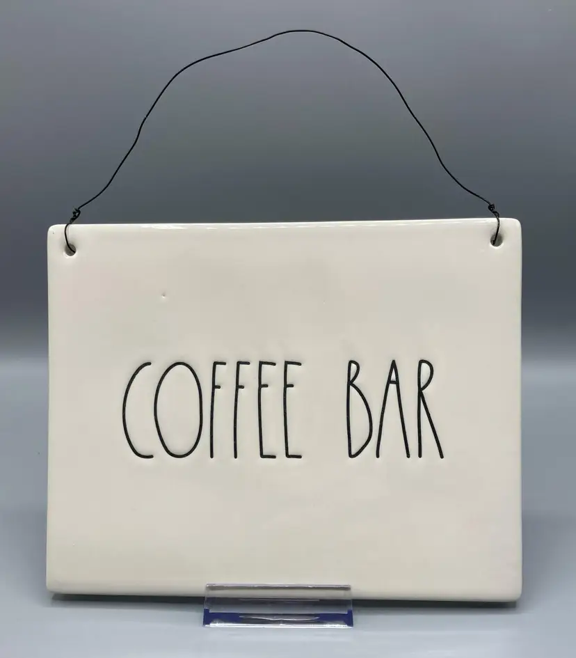 This sign is in good condition. It measures approximately 7 1/2" across and 6" tall (measured without the wire hanger).