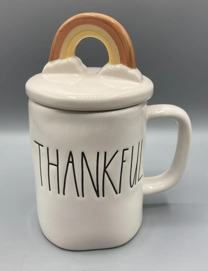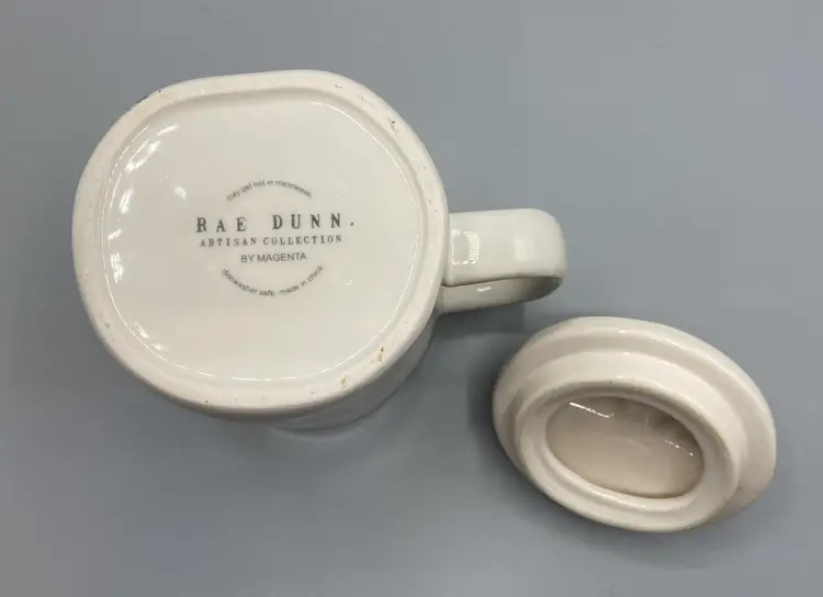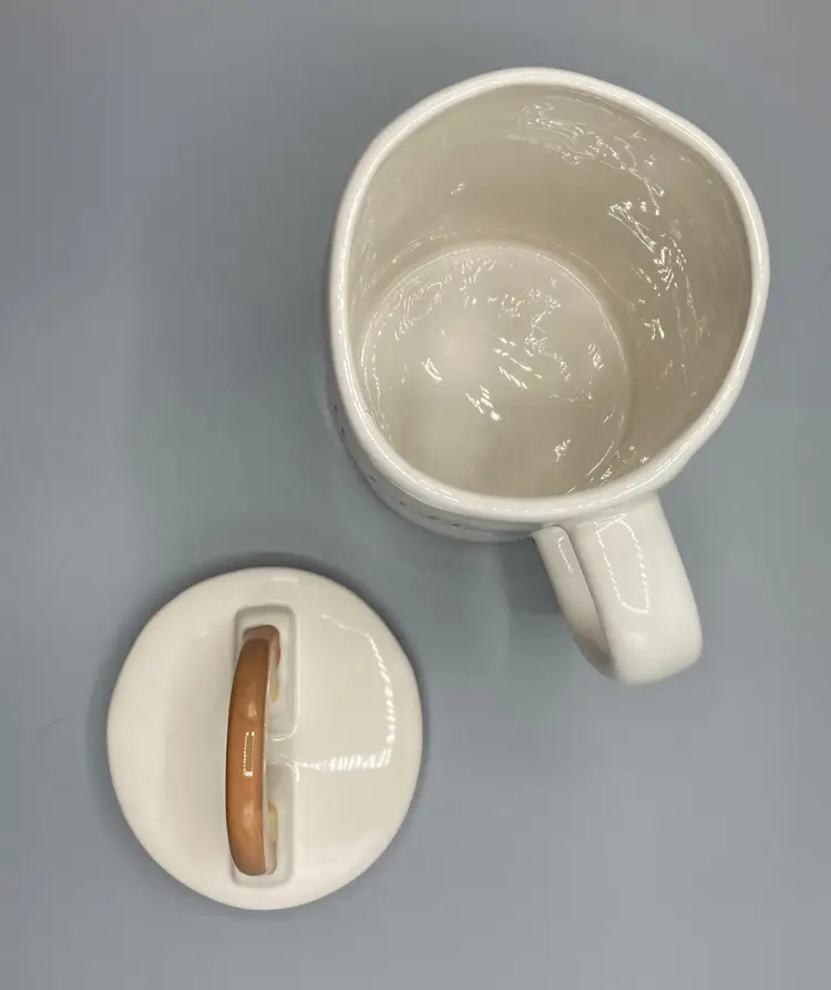 This mug is in good condition. The mug itself measures approximately 4 1/2" tall, with the lid the height is approximately 7" tall.