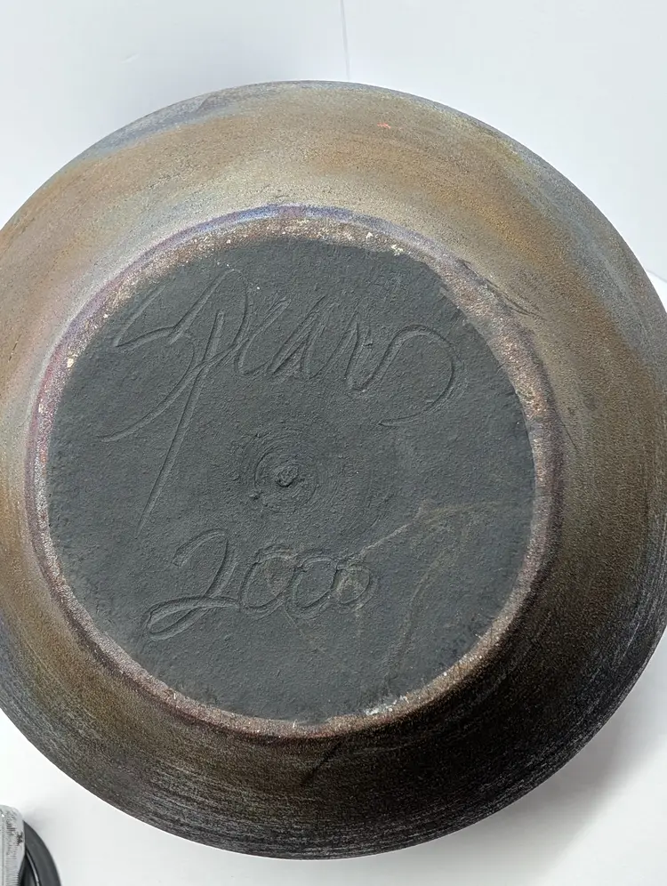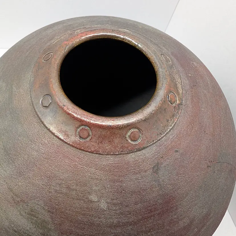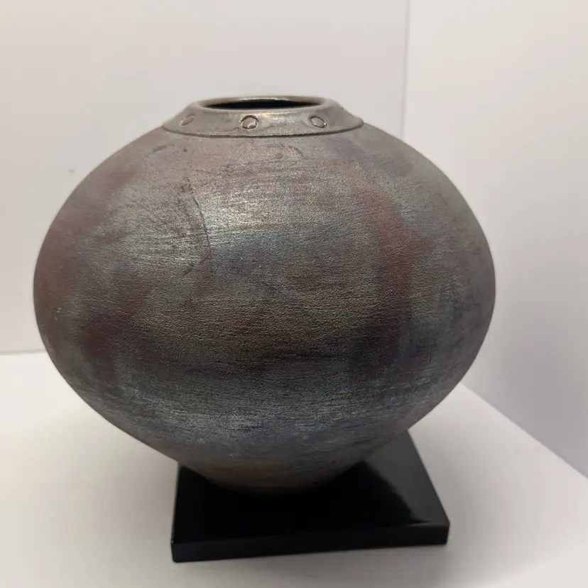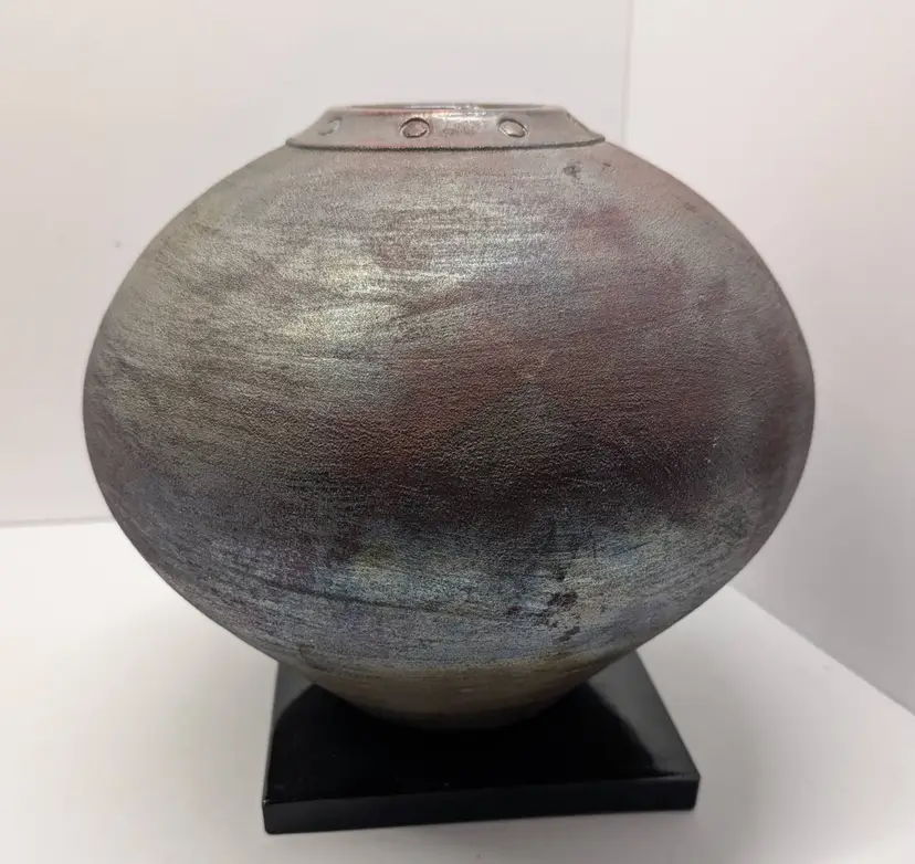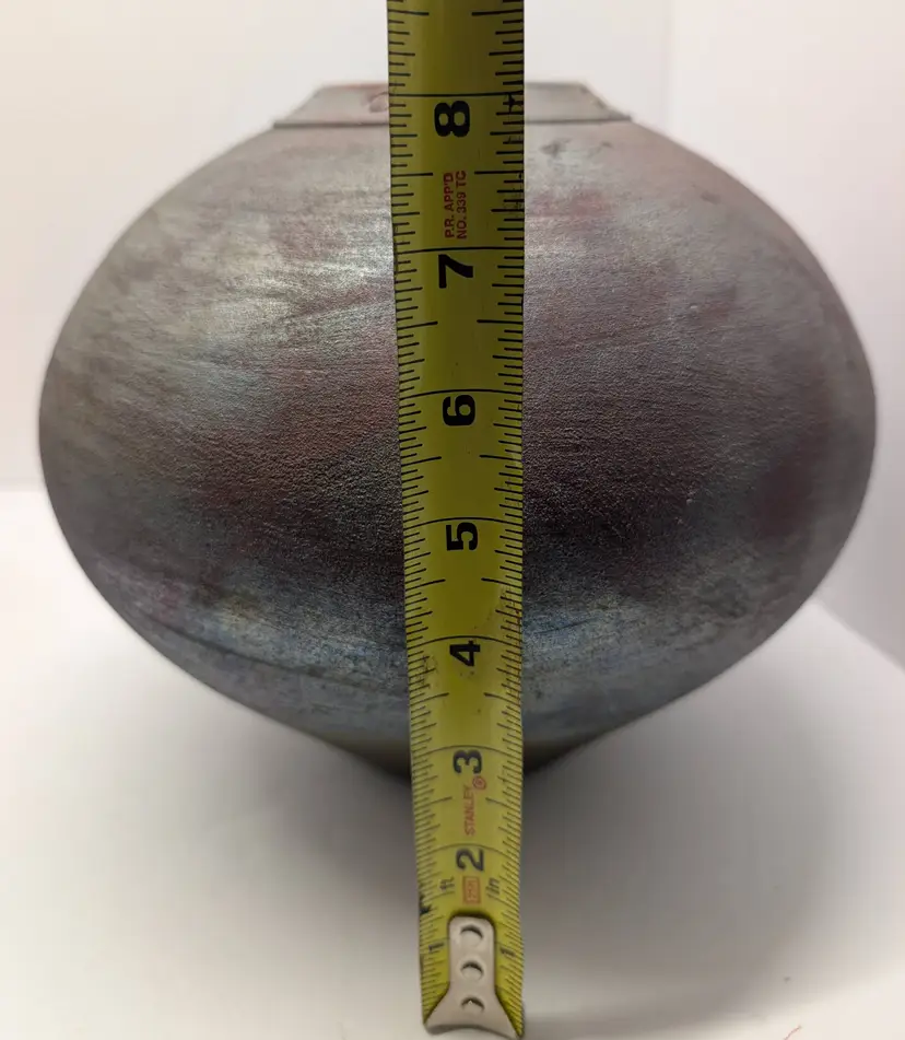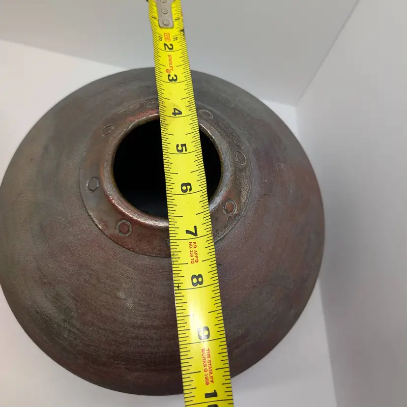 Larry Spears is an Indiana potter who has been making pottery for over 30 years. This vessel is a bit over 8 inches tall and has an opening at the top that is 2 1/2 inches across. This item will ship alone. I do give refunds on shipping overages of anything over $1.00. thank you for looking.