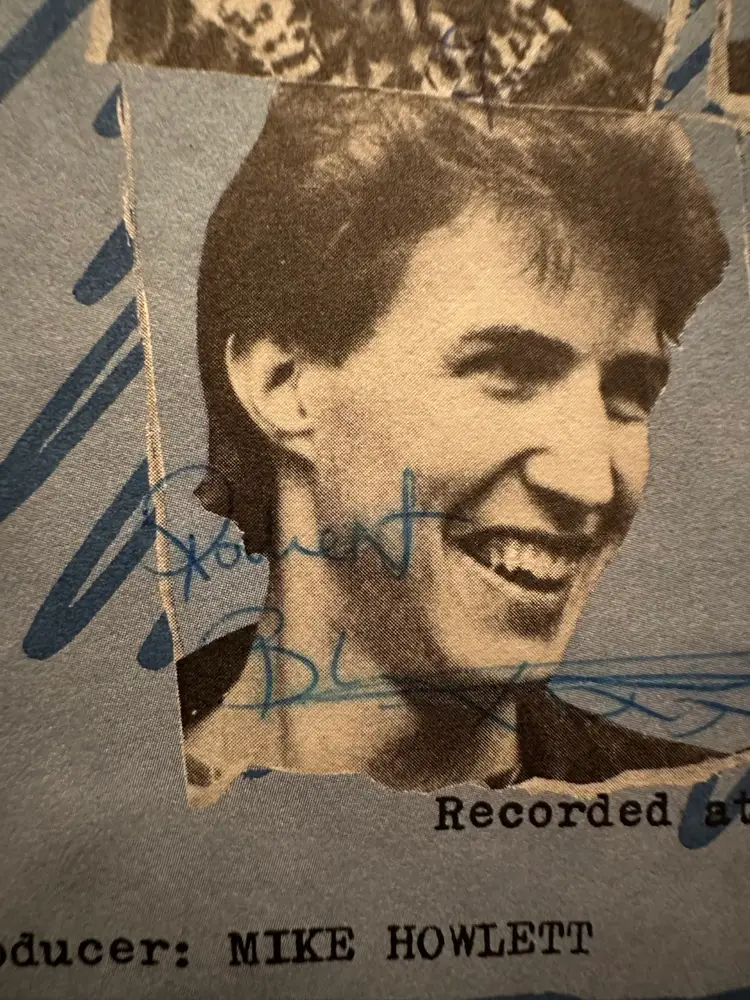 • Sleeve: Blue picture sleeve with band photos on the back. This particular copy has blue-ink pen scribbles and band autographs. While autographs increase desirability, the scribbling/doodling (especially the crossed-out face of Gary Chaplin) detracts slightly from aesthetic appeal but does not reduce autograph authenticity value.