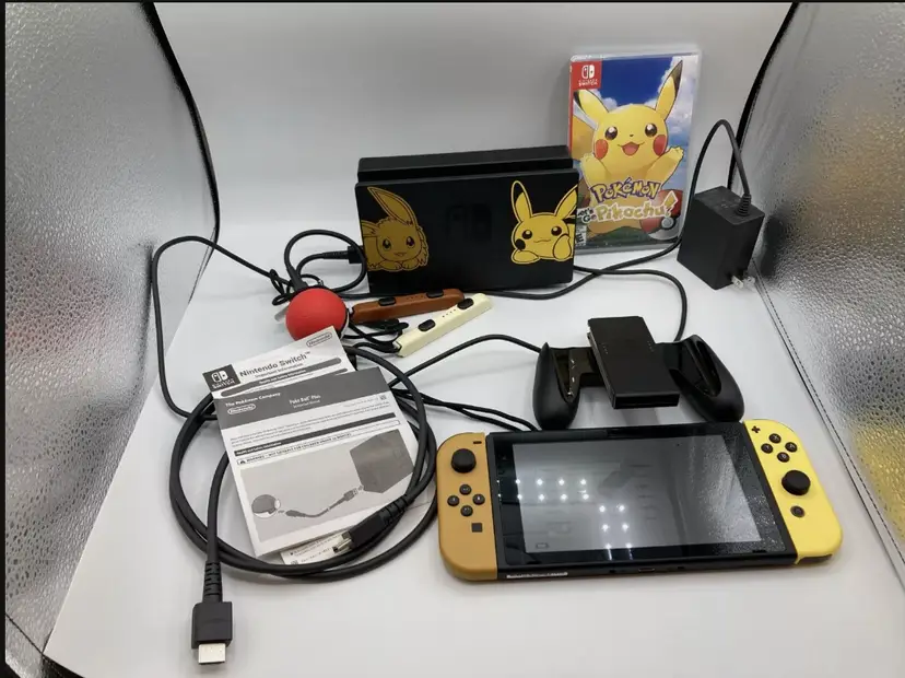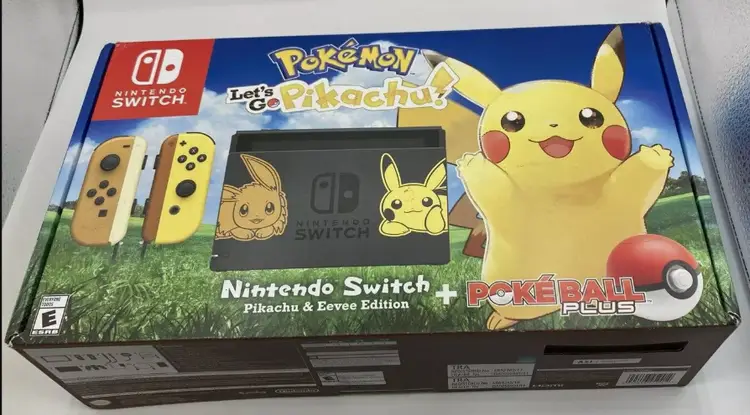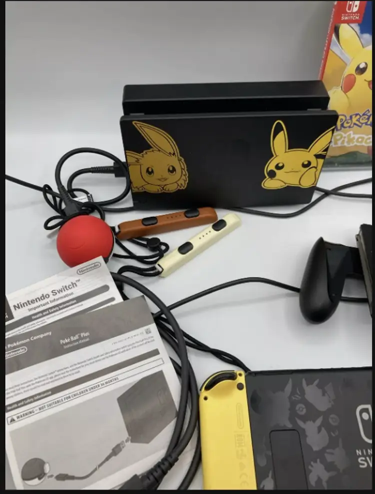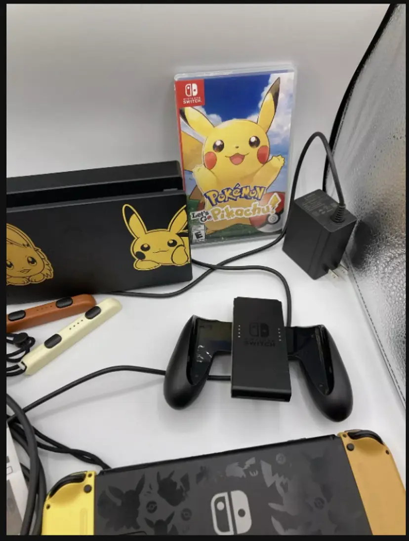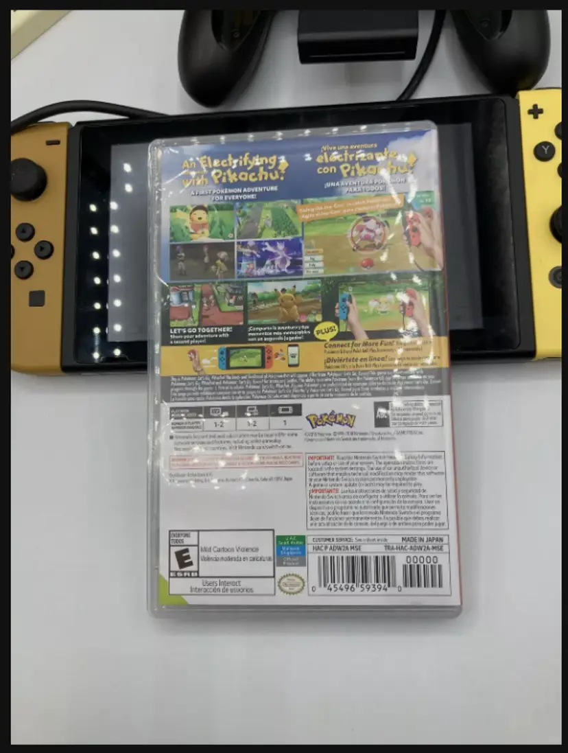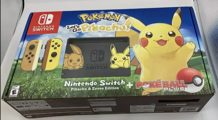 like brand NEW, has the game and all of the parts comes with free screen protector already on the screen !, barely played, comes with box and everything you need ! Immerse yourself in the world of Pokémon with this limited edition Nintendo Switch game, featuring Pikachu and Eevee. With internet browsing and Wi-Fi capability, you can easily connect to other players and trade your favorite Pokémon. This handheld system is perfect for on-the-go gaming, with a resolution of 720p (HD) and a storage capacity of 32 GB. The Nintendo Switch is a popular platform for video game consoles, and this model is no exception. With a sleek black color and the beloved Pikachu and Eevee characters, you'll be able to catch 'em all! This game is perfect for any fan of the Pokémon franchise, and the headphone jack ensures you can enjoy the game's music without any distractions. Don't miss out on this rare and highly sought-after game. ships usps priority mail with tracking number. used like new !